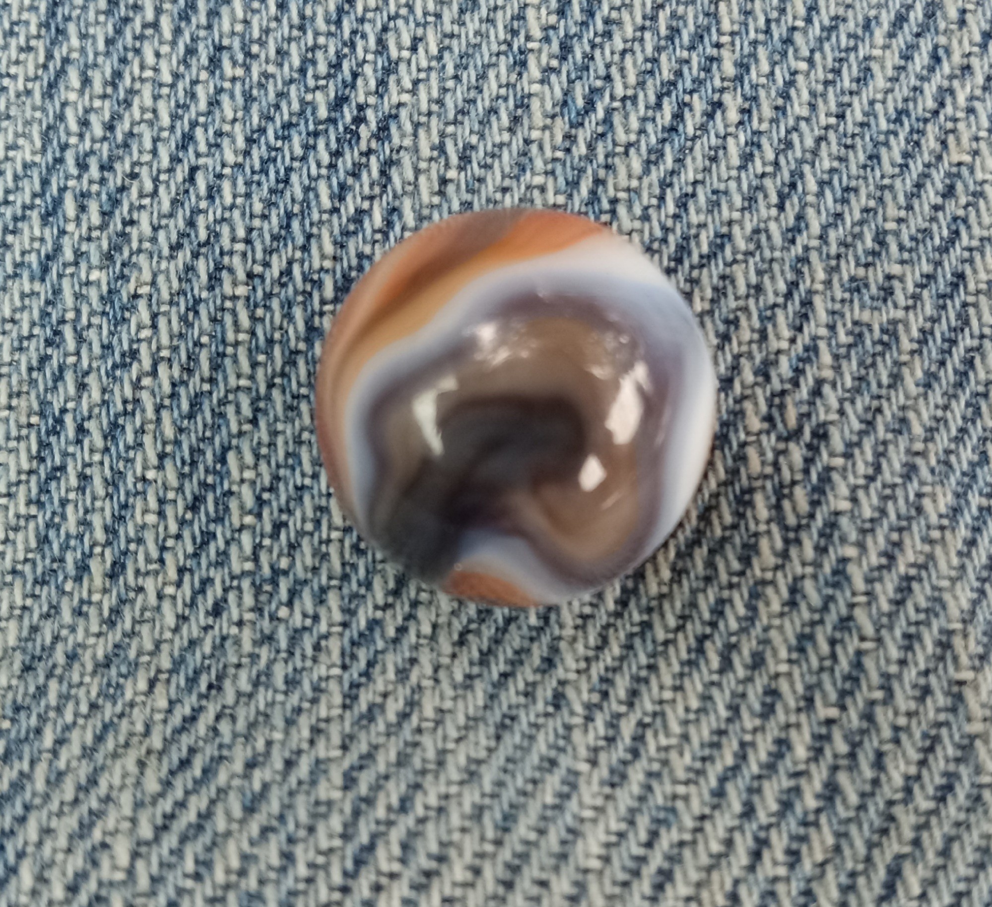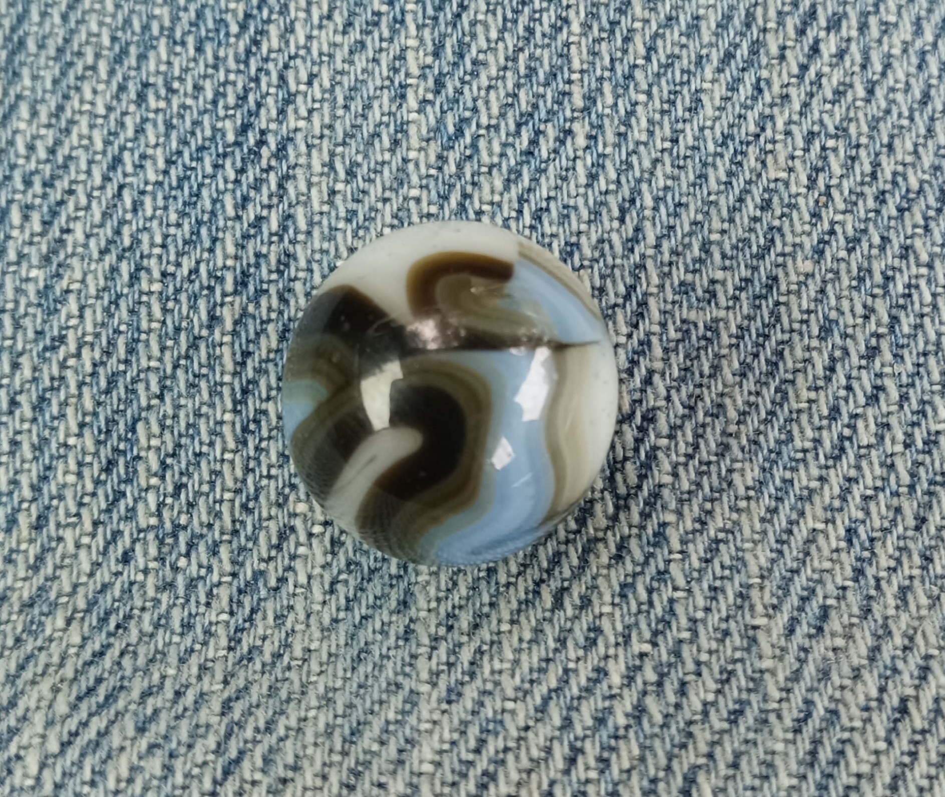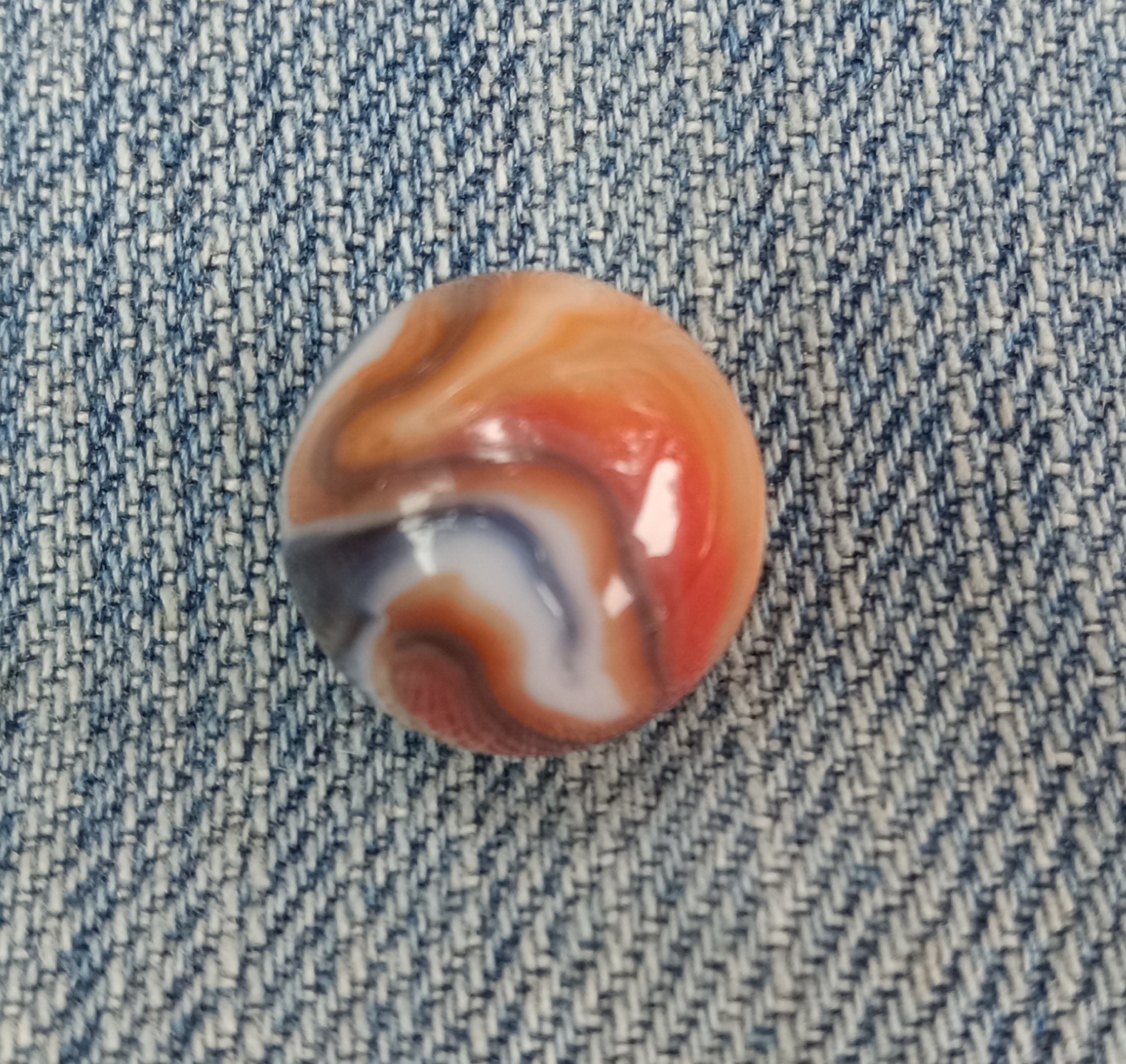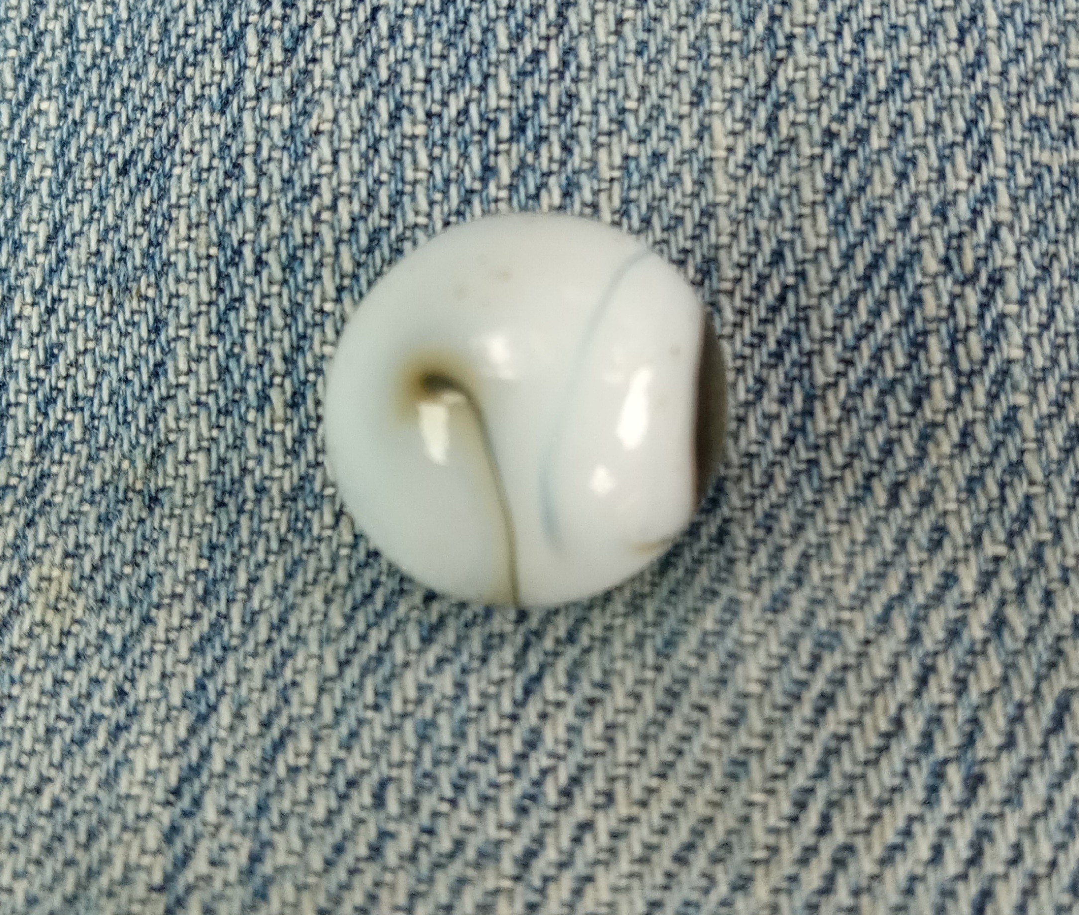 Annealing Fracture IMO, even if you can or can't feel it, some are subsurface and can't be felt with your fingernail some aren't, 100% machine made whether you can see where it was sheared off or not, no indications of it being a single gather IMO. A HTF marble yes, still not a 9.9, 9.0 mint - because of the fracture IMO, rarity doesn't boost condition. Pontils always refer to handmades, where the cane was cut off with shears by hand. Machine mades were cut off with shears to, but by a machine, so no pontils, shear marks, if they can be found. BTW- No such thing as "non fluorescing Ade glass" since that's what ade entails, if it has an ade base it should react to uv light. A good marble will sell itself in my experience. If you like it buy it, whatever makes you happy, as long as you're satisfied but I find the description more than misleading IMO.