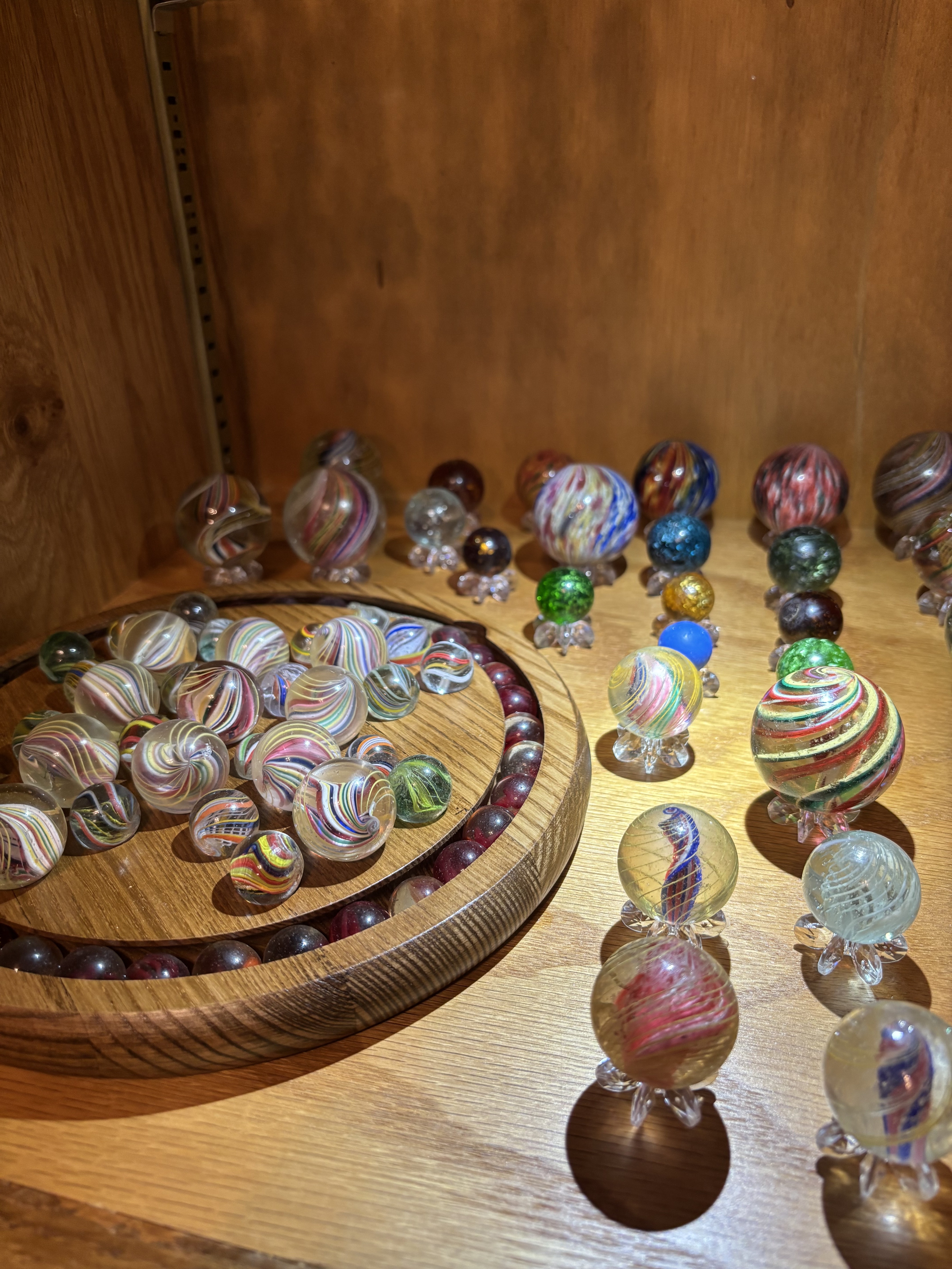 A bundle of joy , there are some VHTF marbles here along W some verry common ones. None make the Pee-Wee cut, some are close but !!