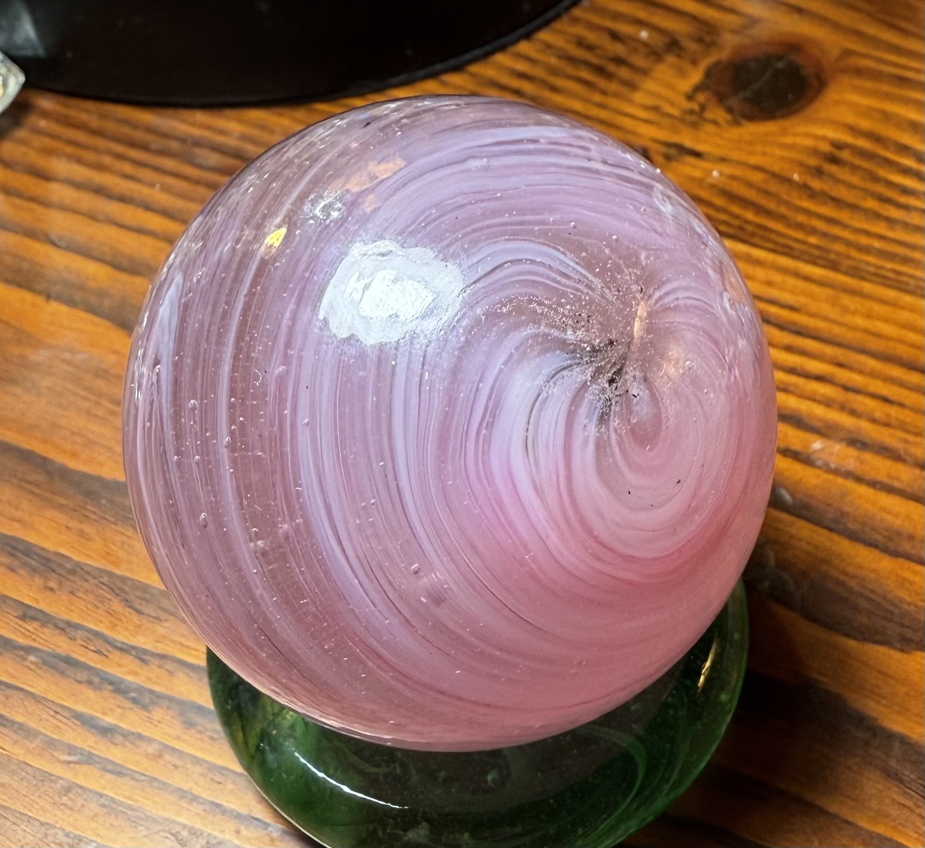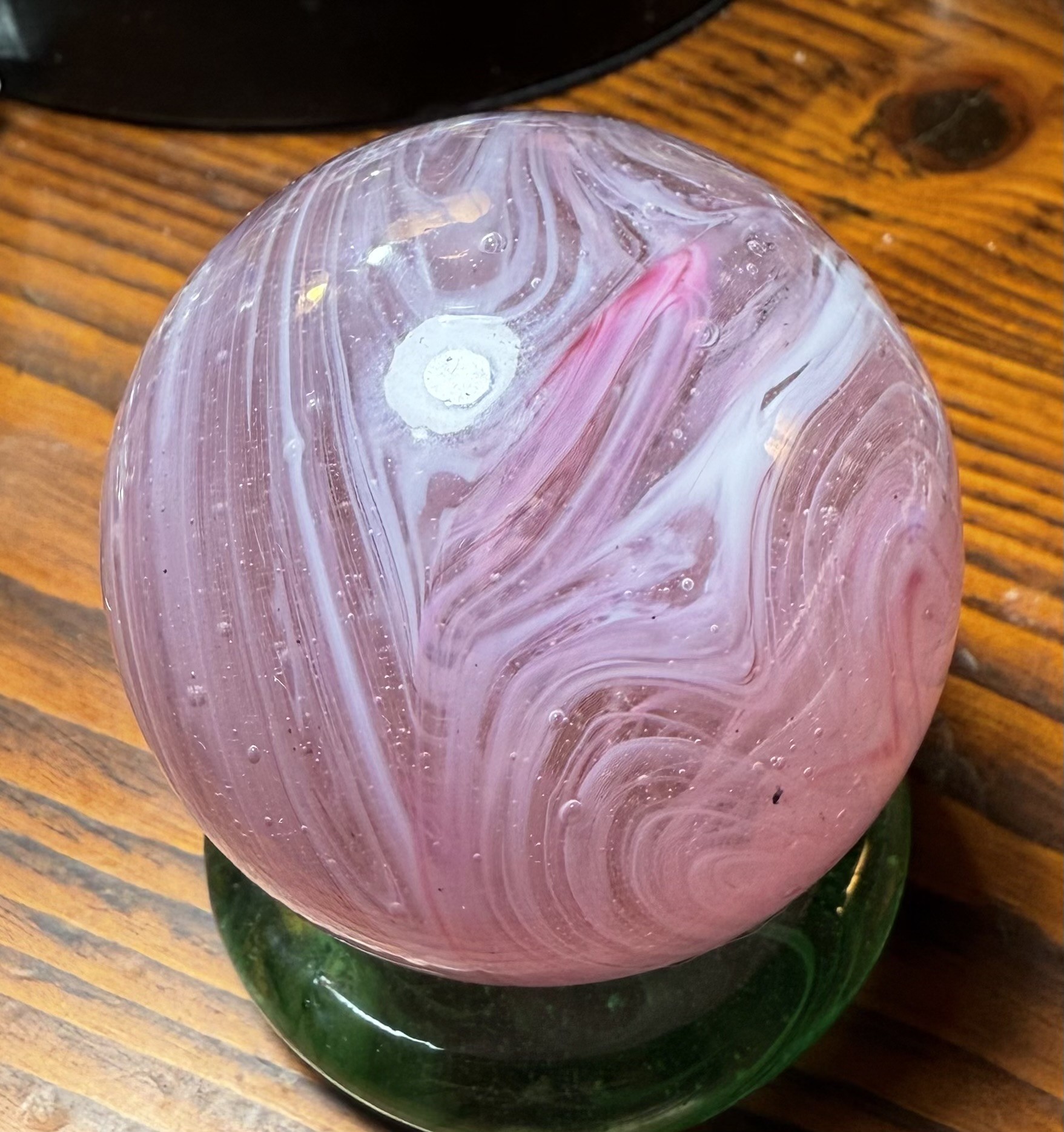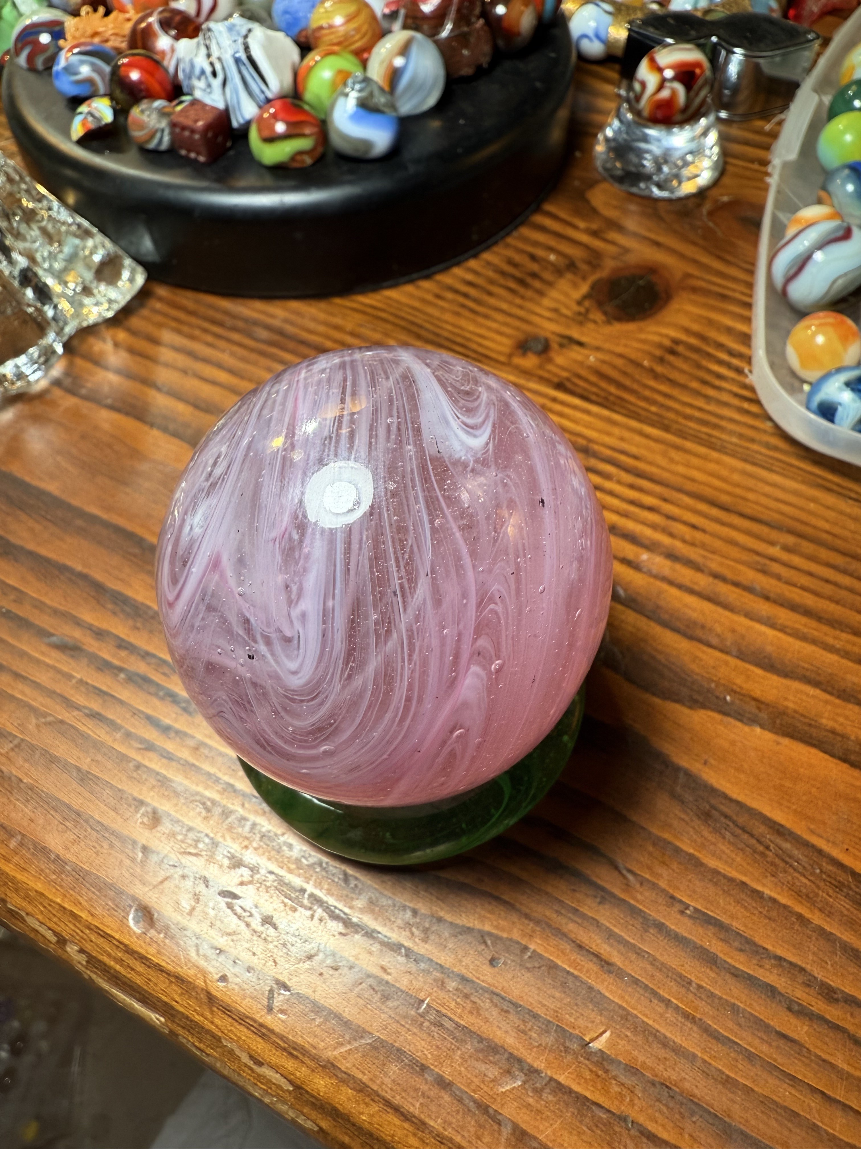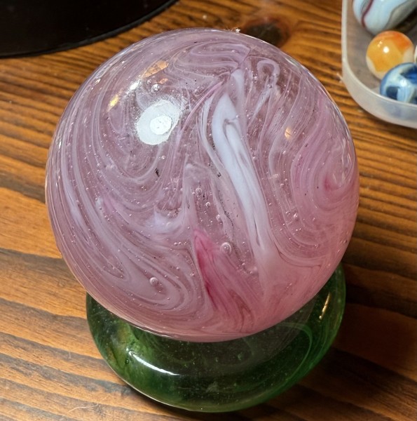 2 and 1/4 Pink Slag. Scott Meyers who signs his marbles Old made this one for me. He didn’t signed.Why I don’t know. All of the others ones in my collection are sign. Fun marble. No one made pink stags🔥 RAR