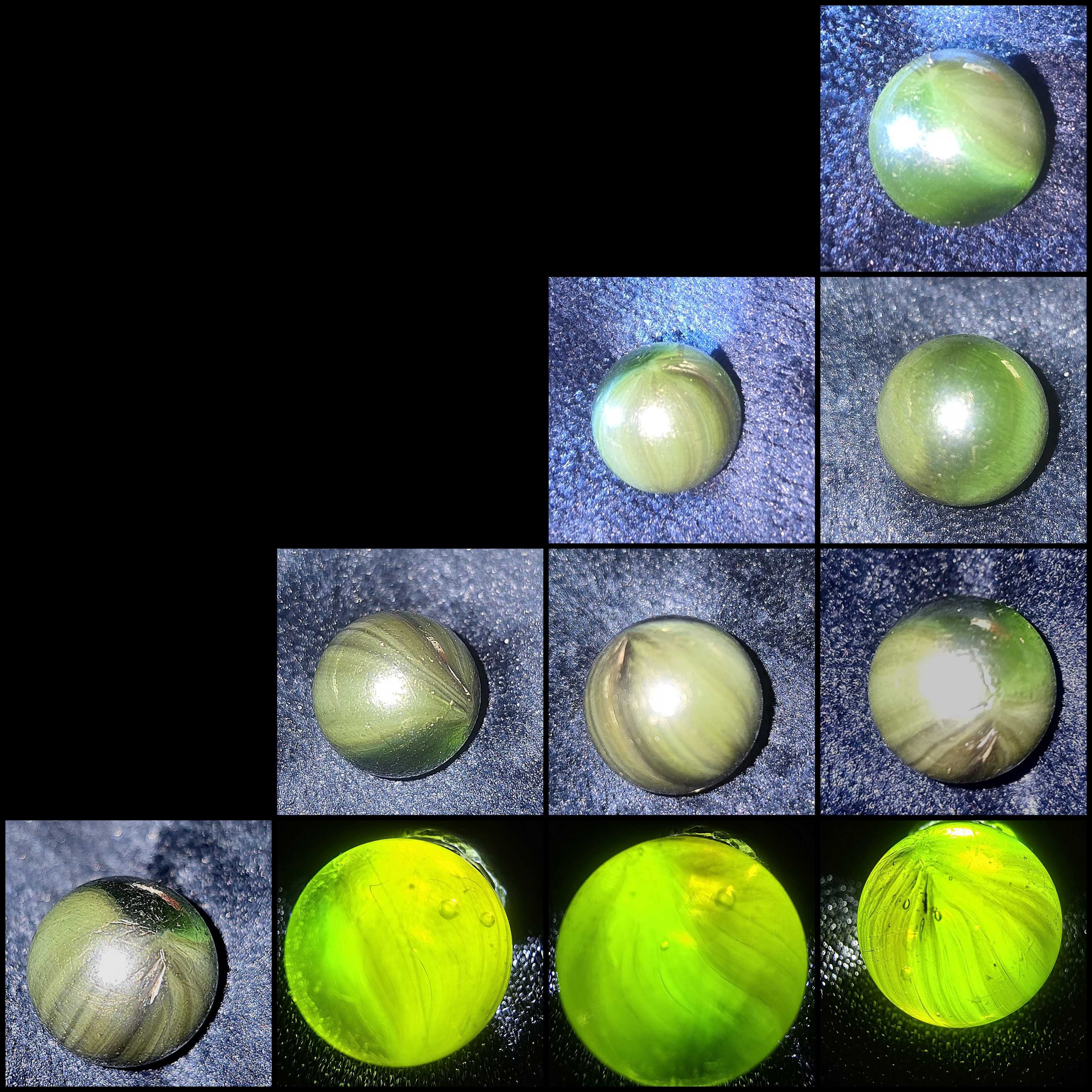 Wonderful bunch of marbles your showing here, for some reason I really like these, but the only one I have is this shooter at 25mm. Yeah I think they are rare, I am glad I have mine, and now know what it is.