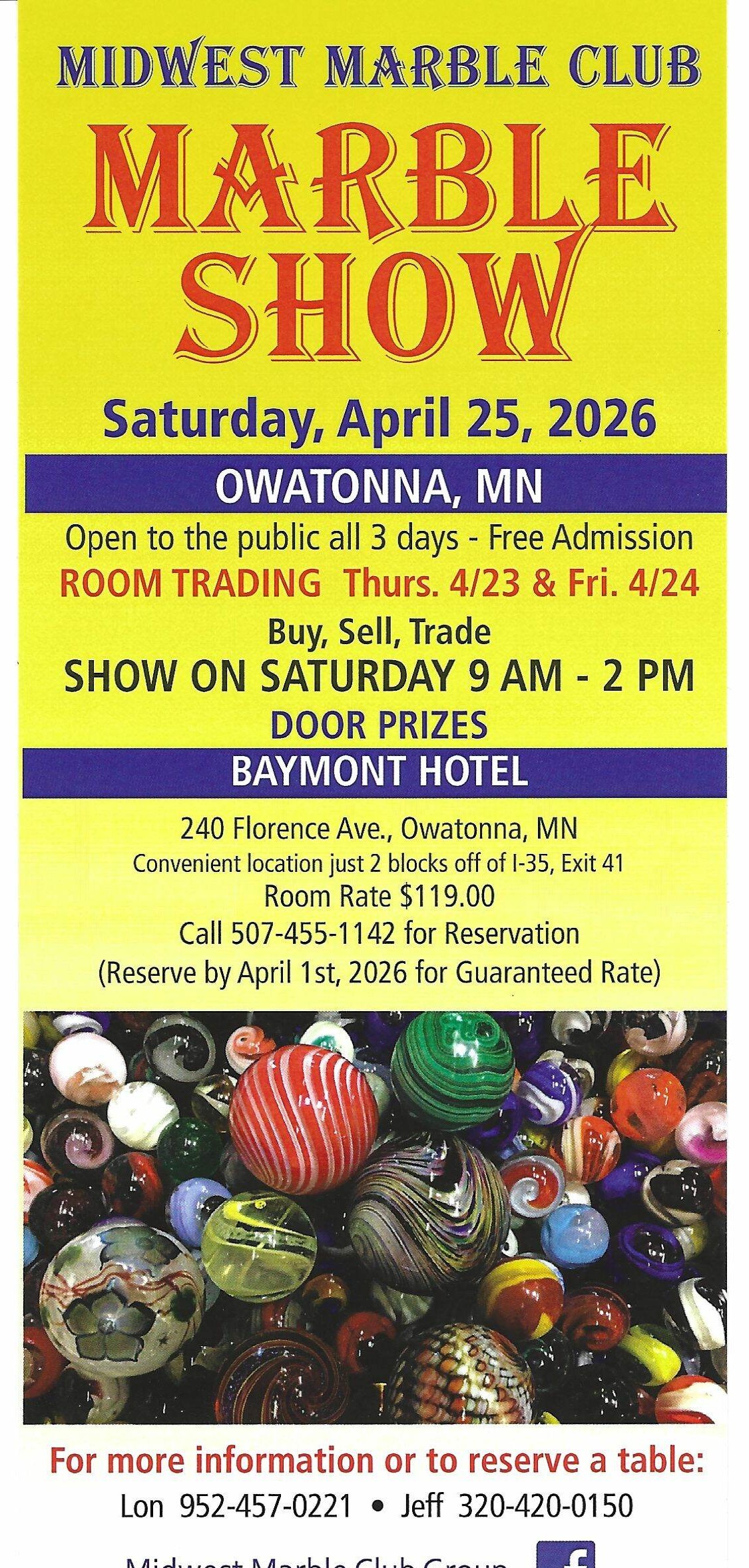 Baymont Hotel - 240 Florence Avenue, Owatonna, MN 507-455-1142 Res Rate $119 if reserve by 4/1/26
