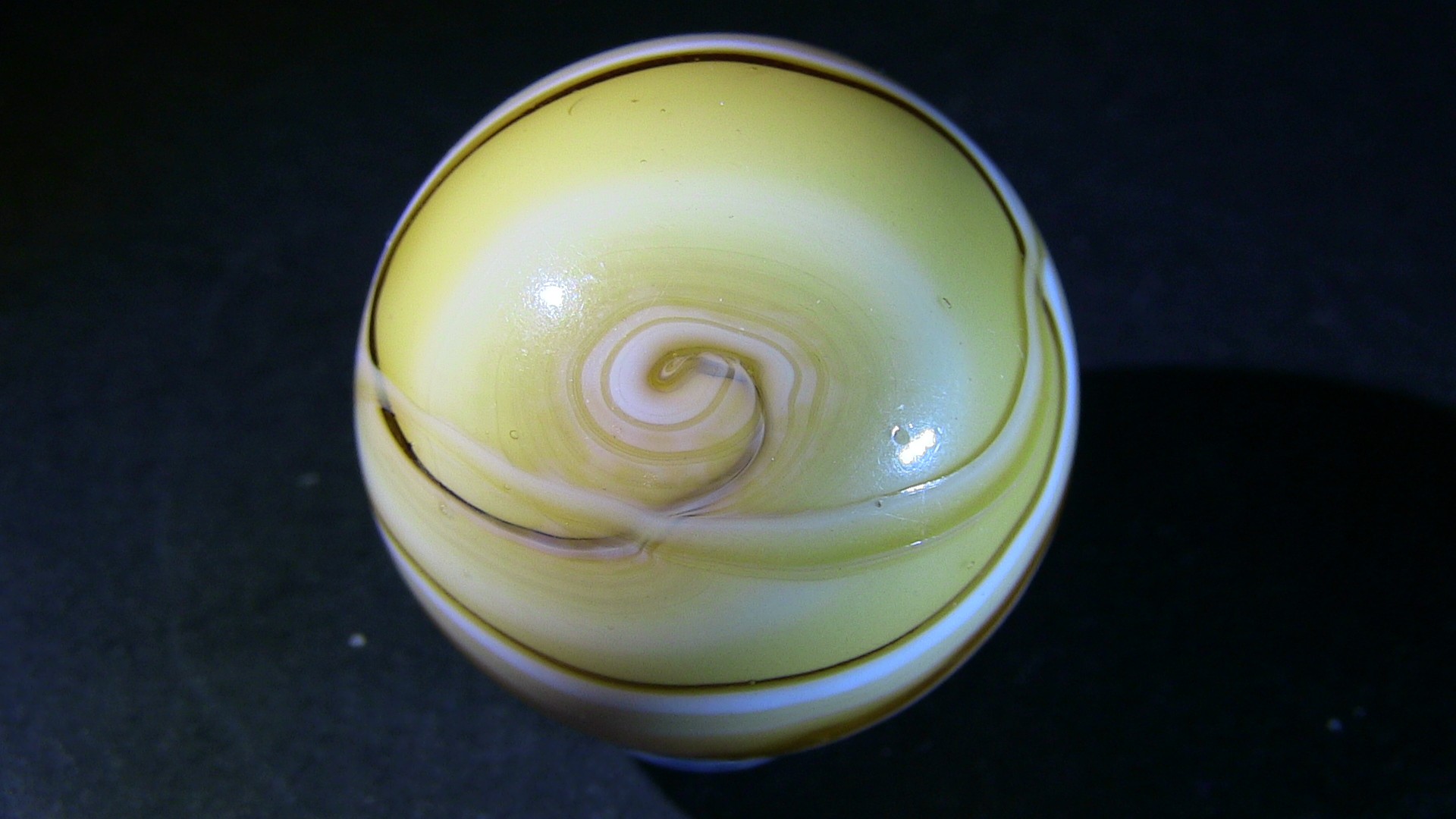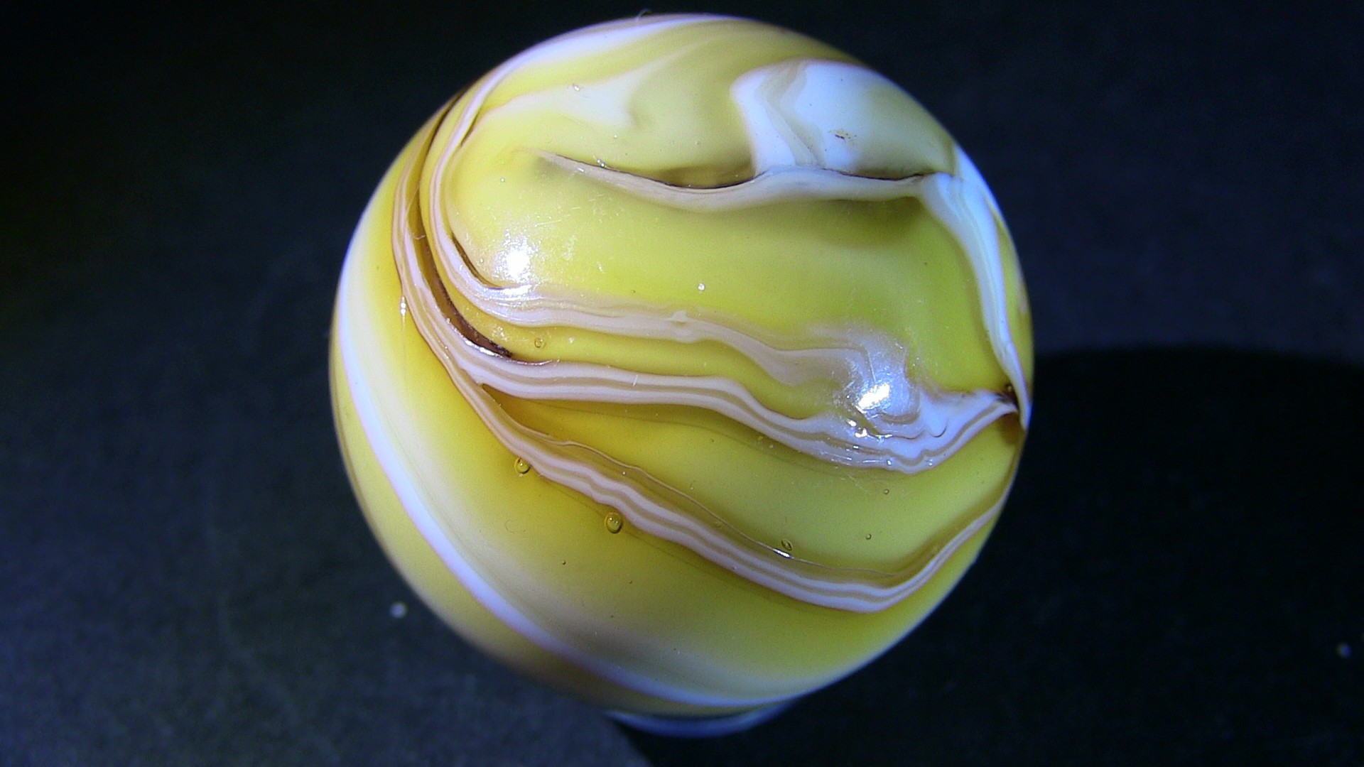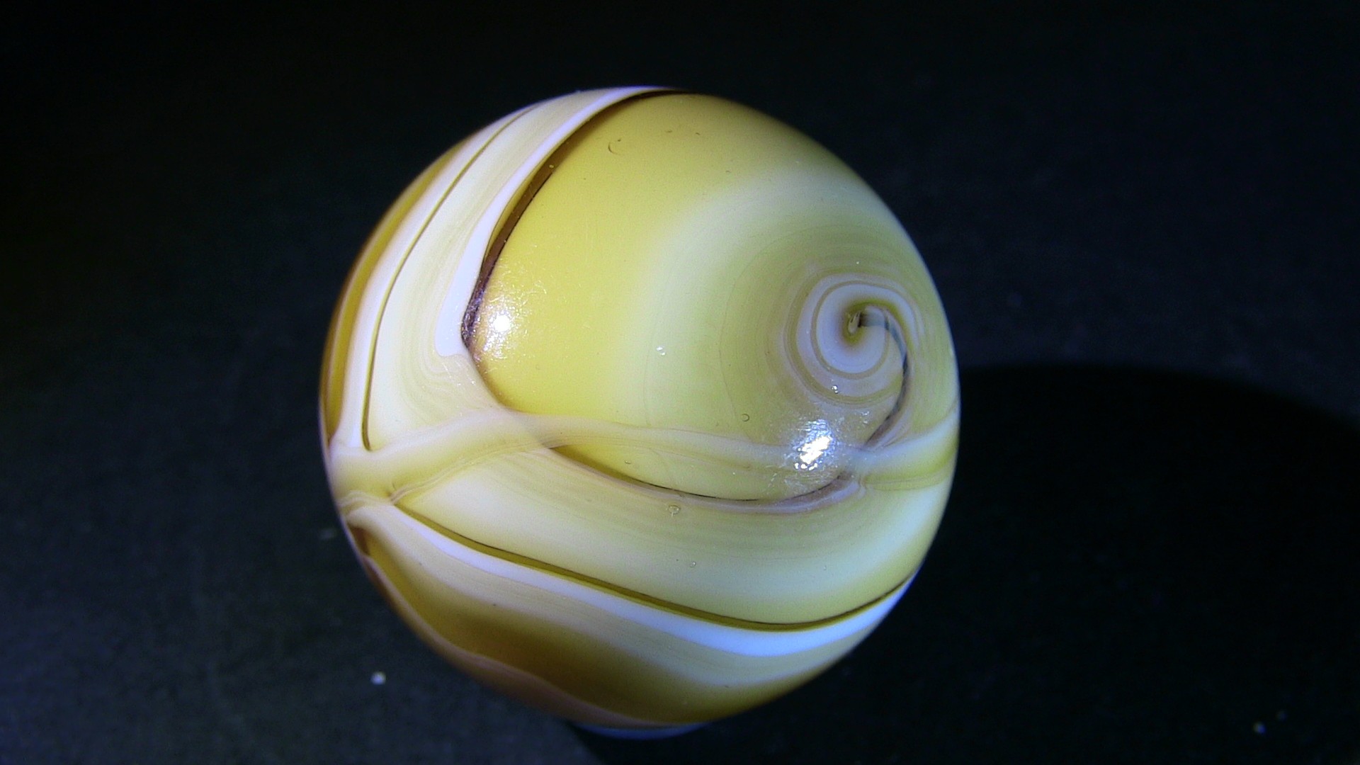 Nothing exceptional, but this AV-loaded marble identified as MK, I found it in a group of marbles from the latest Heaton dig while I was cleaning them. Here is Ron Shepherd's comment during the identification... "I agree. We know that possibly Heaton and for sure that Jack Bogard bought and sold marbles, and cullet with Marble King. I also know for sure that Jack Bogard bought marbles and equipment from Ravenswood. That was according to a talk with Jack by myself. The same day he showed me a set of Ravenswood machine rolls he bought at Ravenswood." Below, I also show a small video to better highlight the aventurine 1.mp43 points