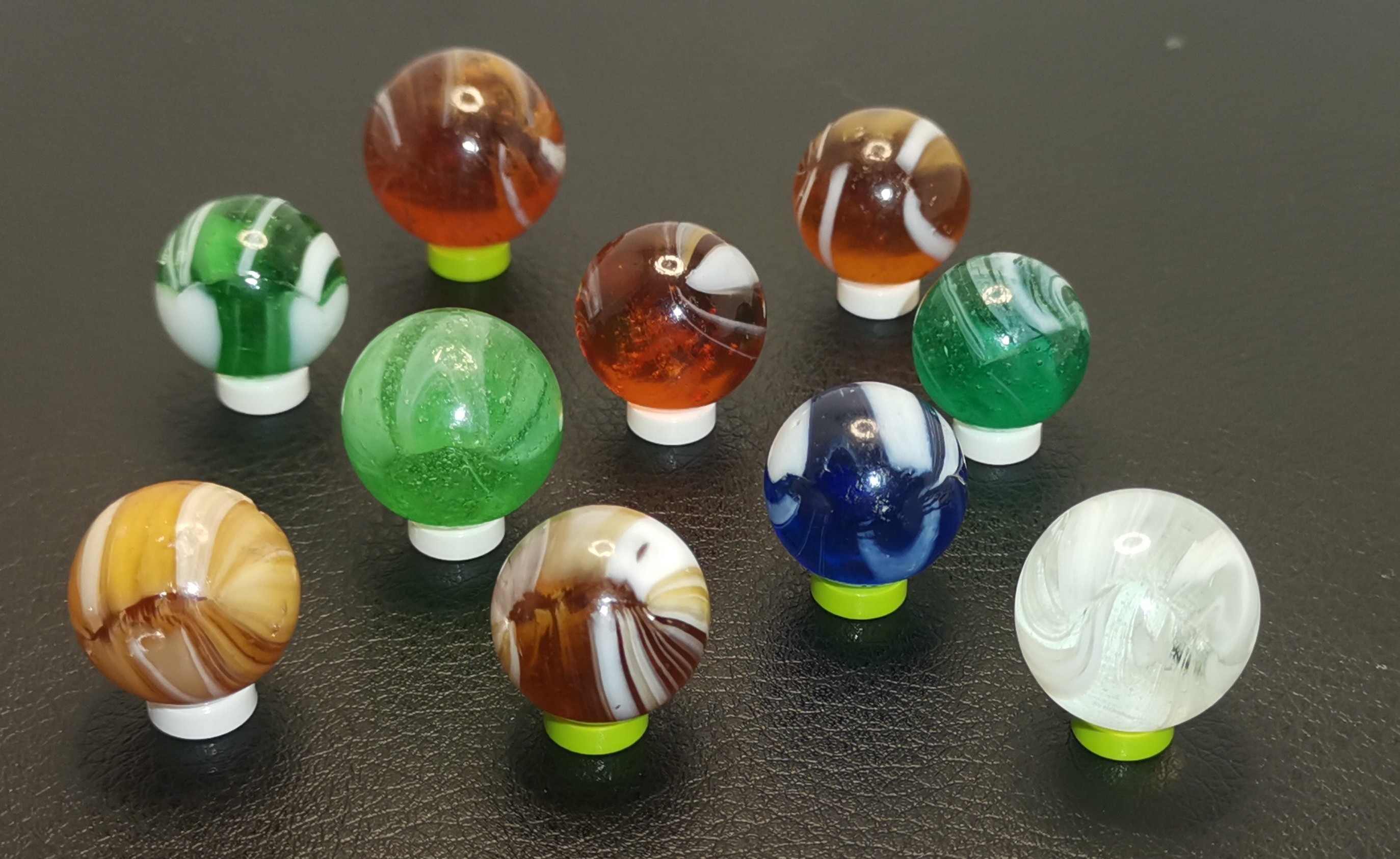 Those are very nice Stephen. Could you perhaps post a photo of the orange one. I have all the colours you show but have not had the pleasure of seeing an orange one Here is my combinations. Only have the five combos in shooter size. I would also love to hear if there are more known colors in shooter available..