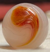 Prob'ly not a bruiser, the clear is brown not green. I'm gonn'a go with akro, and a cork at that. As soon as I stopped lookin' at the blue as a stripe and saw it as the base glass it all fell into place. The clear glass goes around from pole to pole, it stretches into a hair thin stripe in one spot but is unbroken all the way. Thanks
