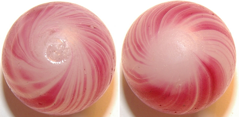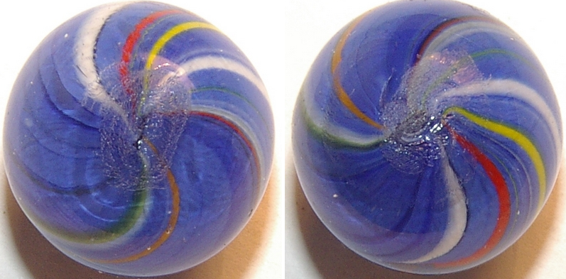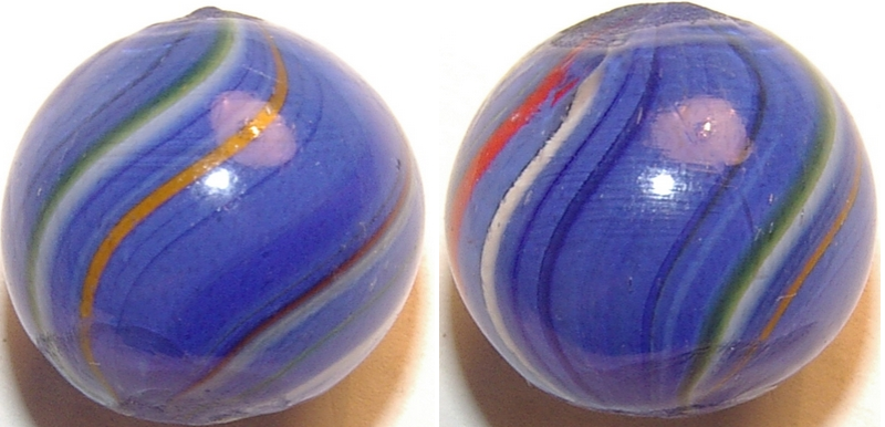 German and English hand mades were both German made except at different times. The older Germans had mostly faceted or melted pontils and were bigger while the newer hand made Germans were smaller and had brighter colors with unfinished pontils increasing production for the evolving English game board market of the late Victorian era. Later date German handmades were made mostly for the English gameboard market, thus the smaller & smaller size. 99% of the older Germans I have are monsters with one faceted pontil and a melted pigtail on the other end. The brighter and smaller ones I have especially the Joseph coats have brilliant colors are small and almost all of them have two unfinished pontils, including the latts and divided cores, greatly increasing the production rate.