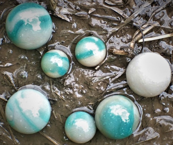 All vintage or current, machine made glass marbles have two cutmarks Wolf.