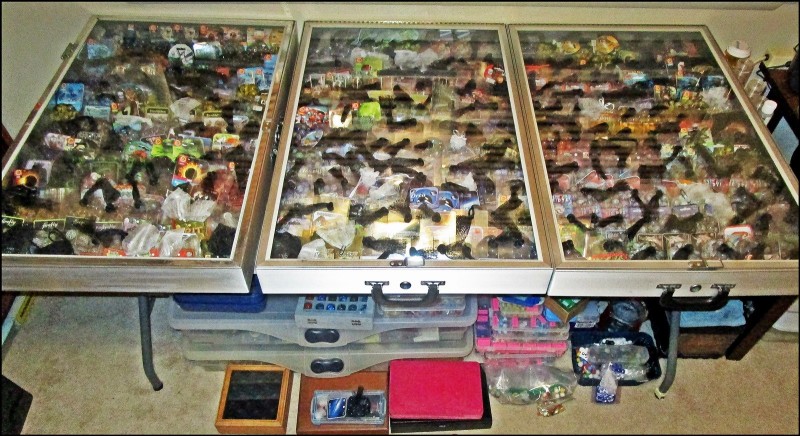 Sorta an update. Still like my Mexican marbles. Most of these are Mega Marbles. The ones in the showcases are alphabetically arranged and complete with a tag ( whether I made it or original ) and hold 24 players and 1 Shooter. Under the table are sorted extra players, 7/8 inch and larger and some stuff that needs to go elsewhere at the moment. Oh yes, there's more of these Mega's that I can show. Many more. I am having a lot of fun here with these and keeping my mind occupied too.