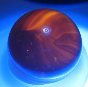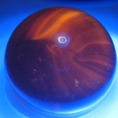Been looking for a match to this one... beautiful and in my case permanently no matter what it turns out to be; but would be nice to have a name. The patch is almost wood like. When I seach with phone camera, the first thing that popped was Peltier Copperhead that had sold online which I don't trust. Took pics in natural and under circ light. Last pic has round light reflect, that is not a pontil or chip, just light circle. Measures .85 All help appreciated.