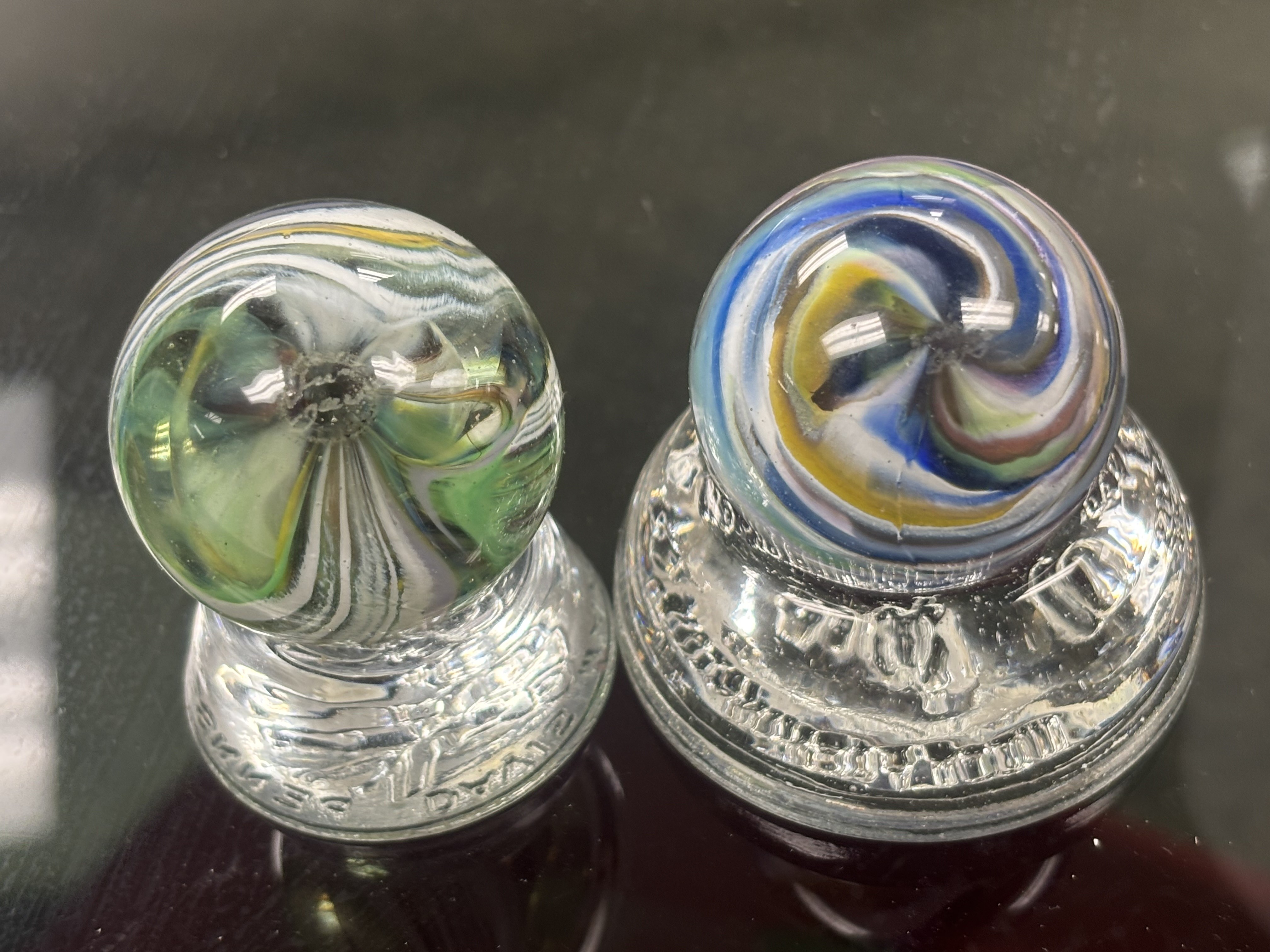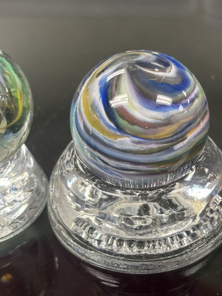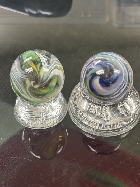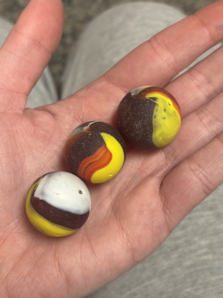 1. Anyone know what these are? Or can help point me in a direction? These aren’t marked that I can see, the three brown ones are matted. Just inherited so many marbles and feeling clueless to what I’m looking at. I appreciate any and all the help I can get.