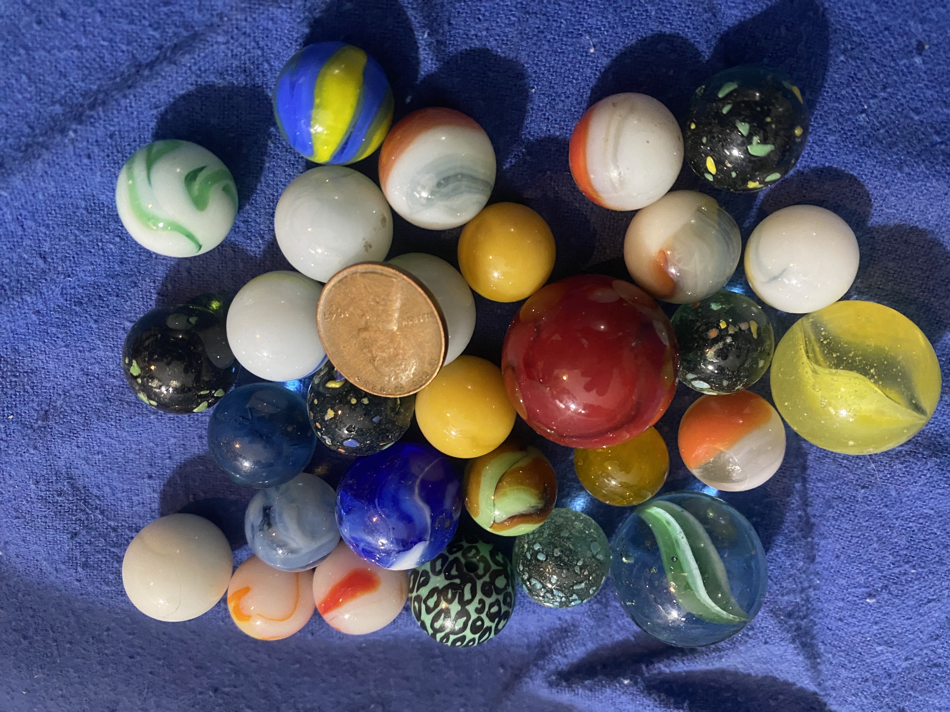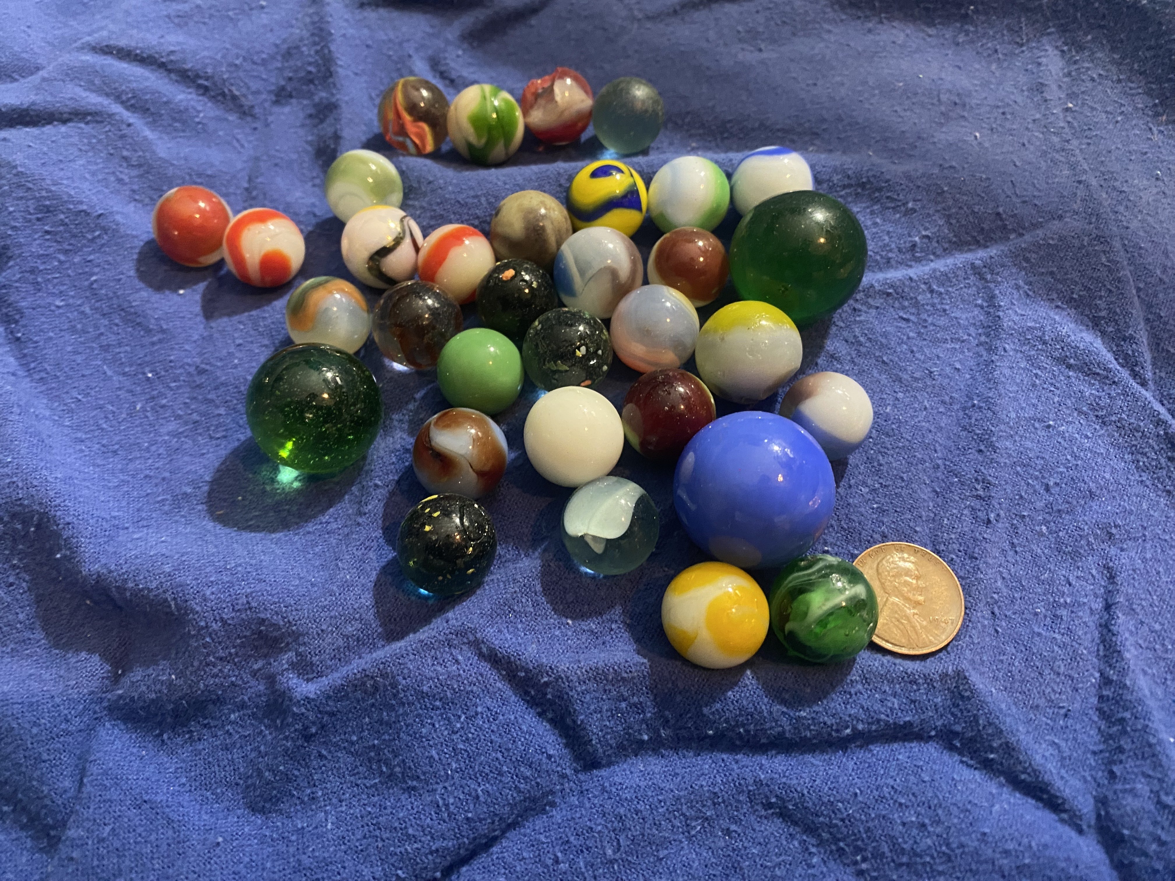 I’m hoping for some help identifying these marbles. They came from an estate collection that belonged to my father, who was born in 1939 and collected for many years.