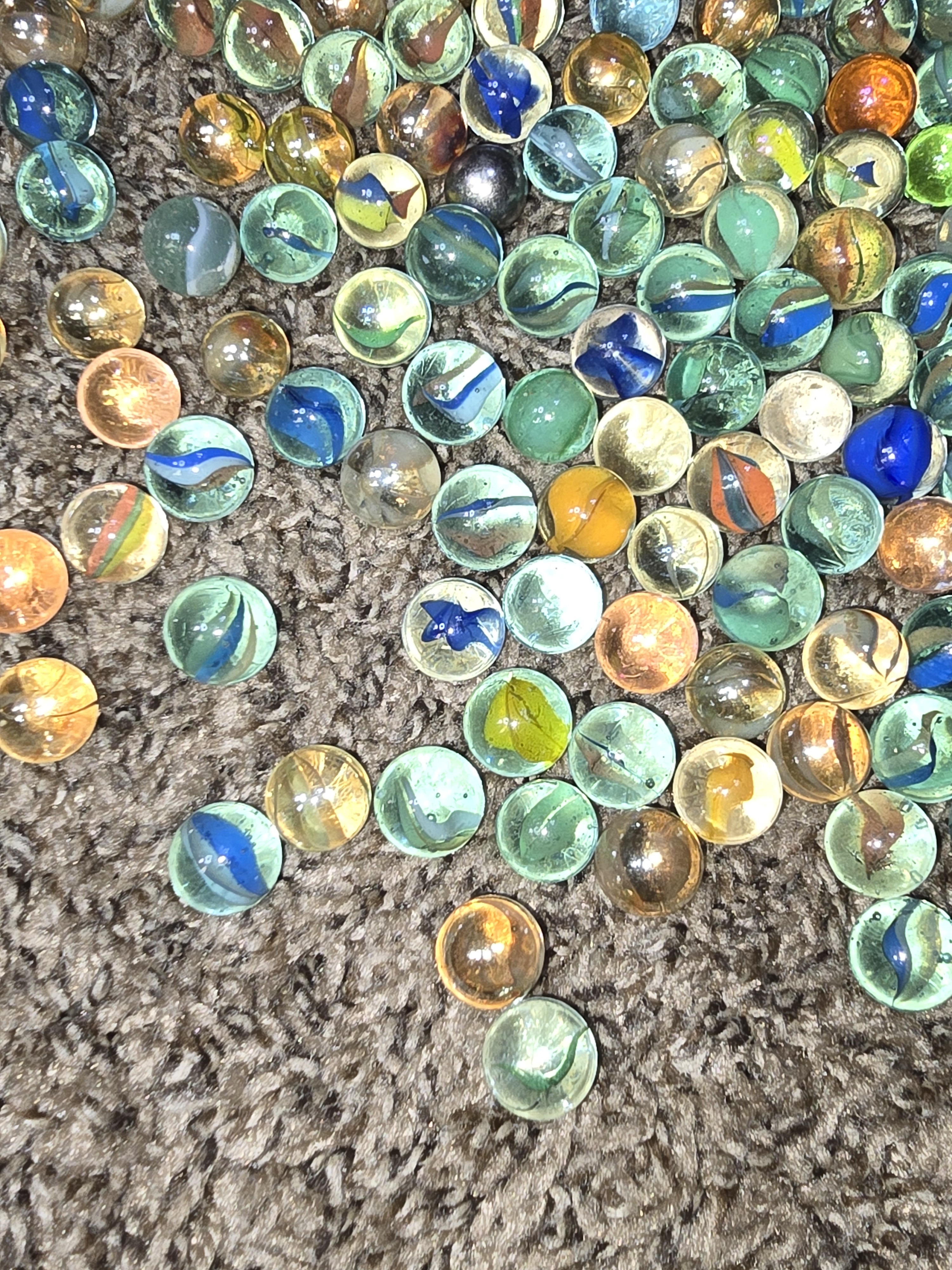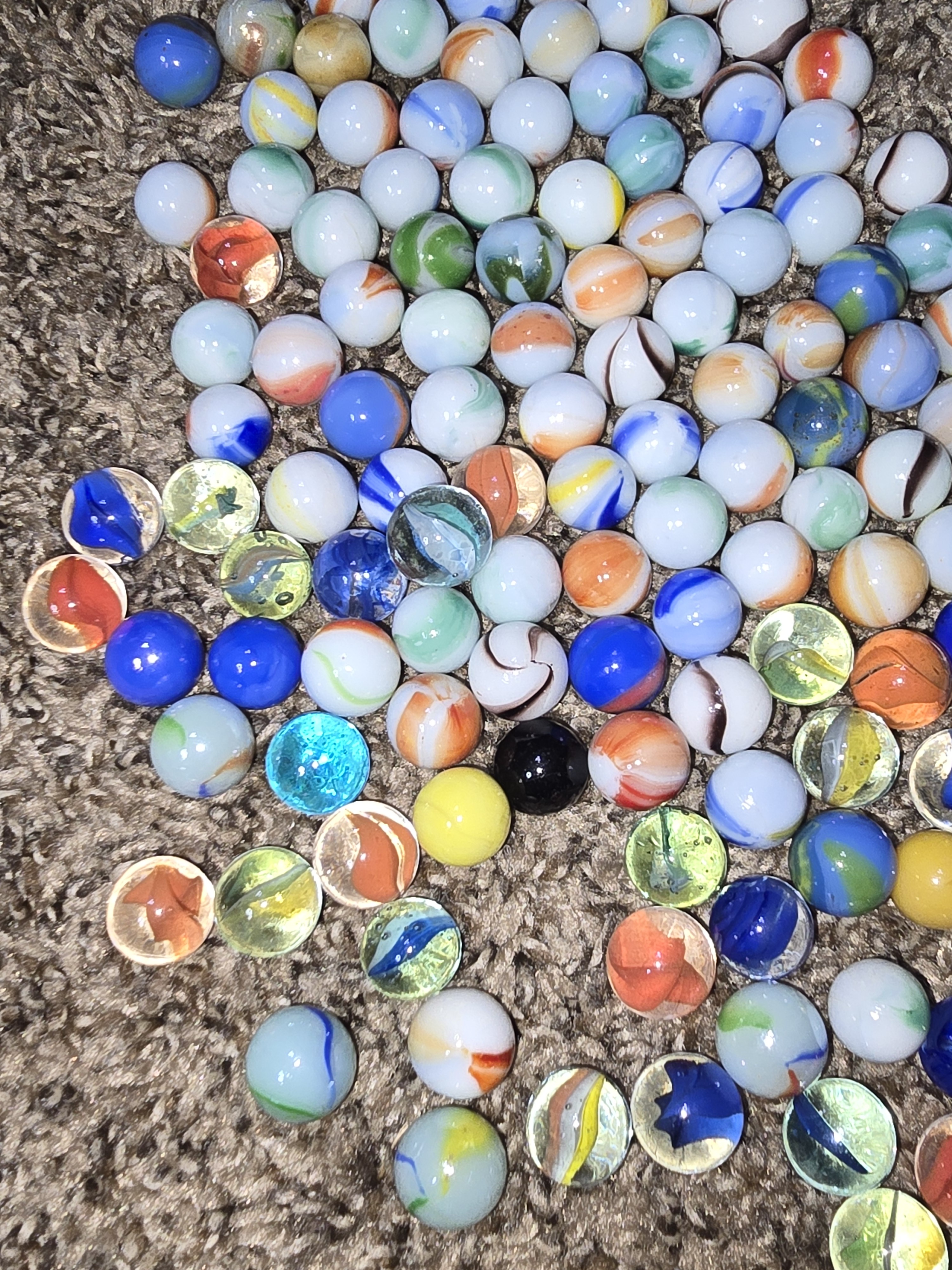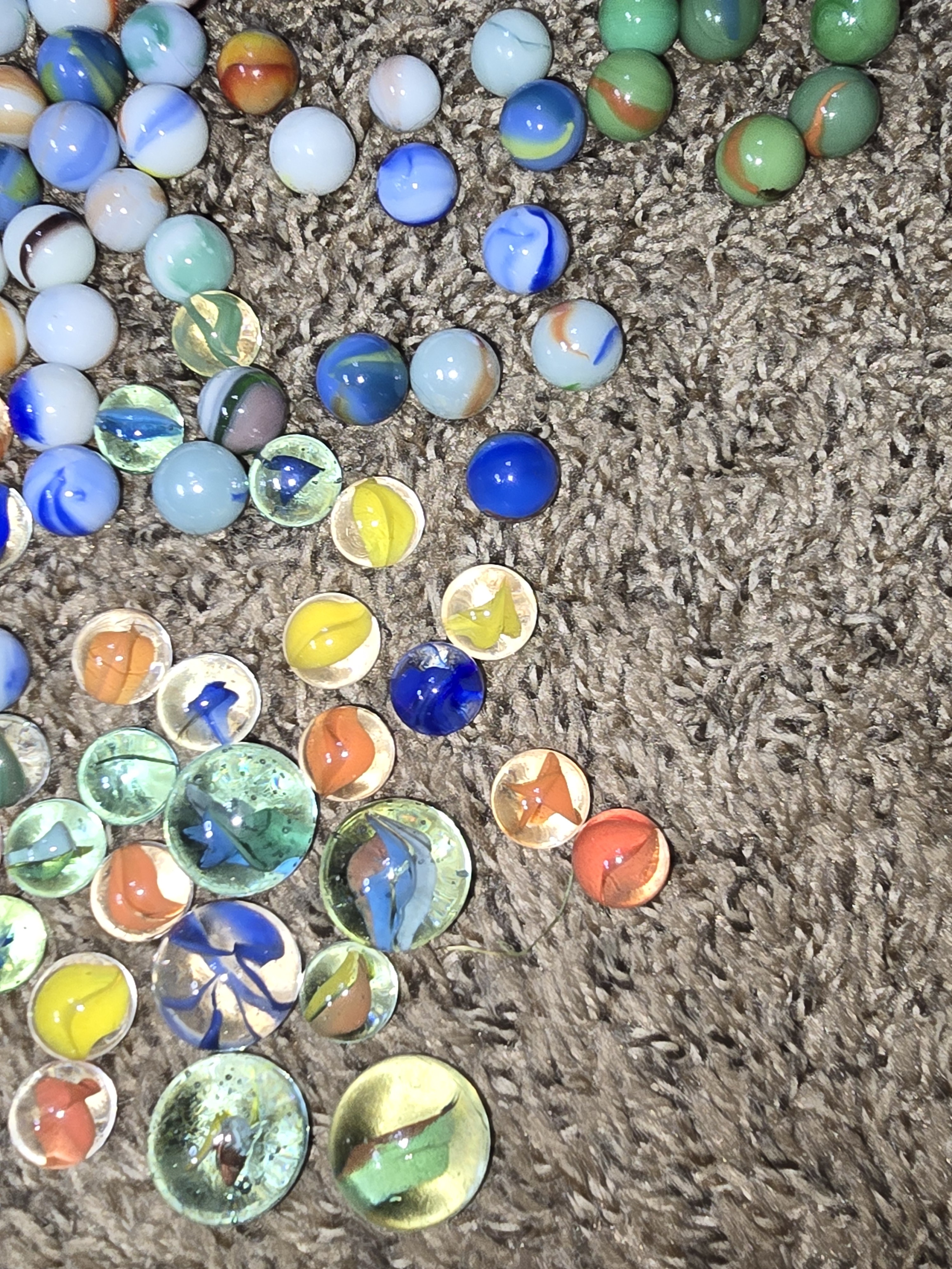 Some of these marbles I've had since I was a kid (70s) a few or my daughters when she was a kid ( tried to leave them out of the pictures) and then about 50% of them came from an elderly woman who had no children at all . She said they were hers when she was a child. Never asked her age but I think she was at least in her 70s.. Anyway I have no idea if any of these are collectible or worth anything or if I just donate them to thrift store. Found this group and thought I might ask her and see if anyone could be able to help me. I don't know of anybody local boise idaho that could help me look at them either.