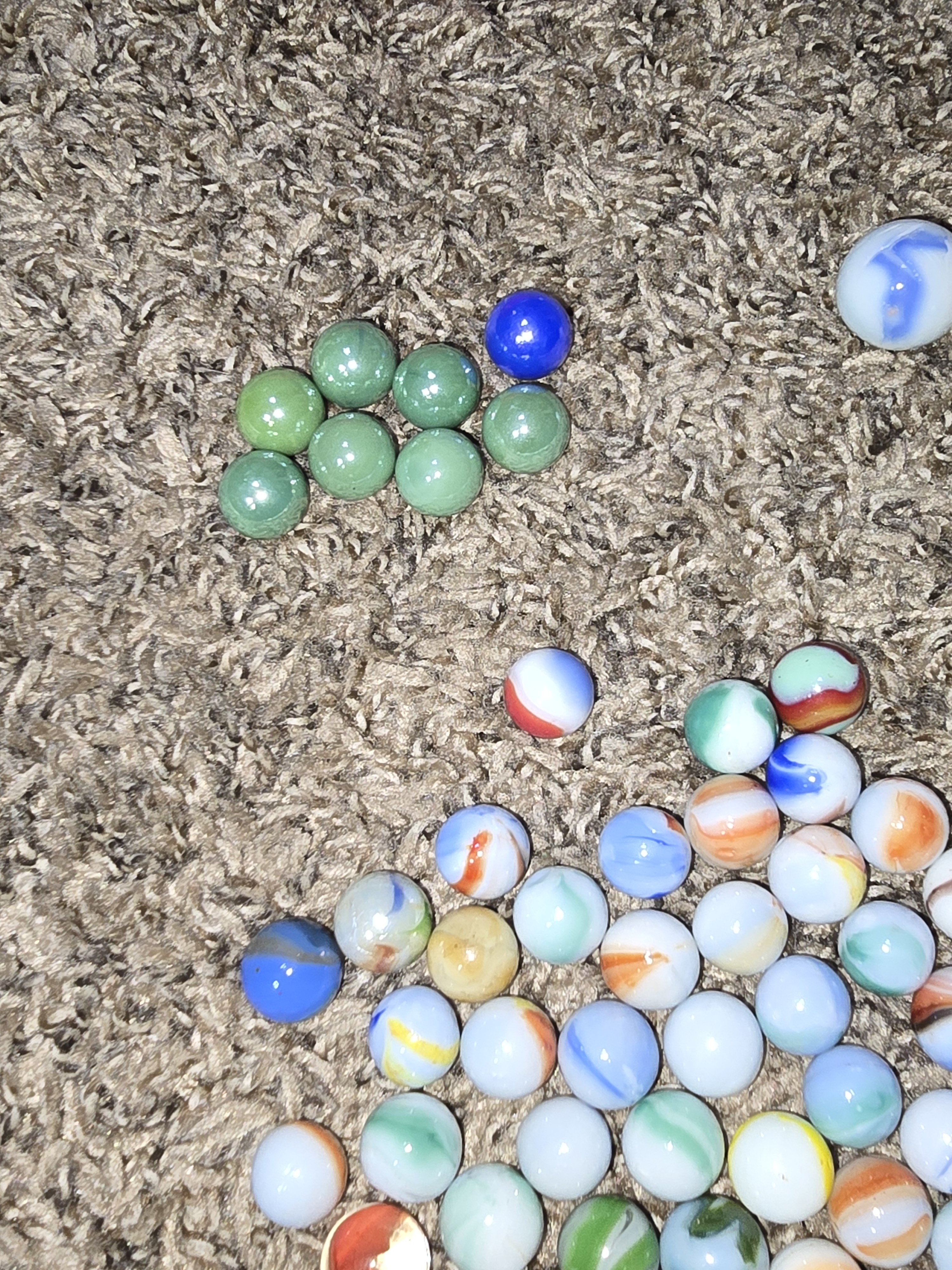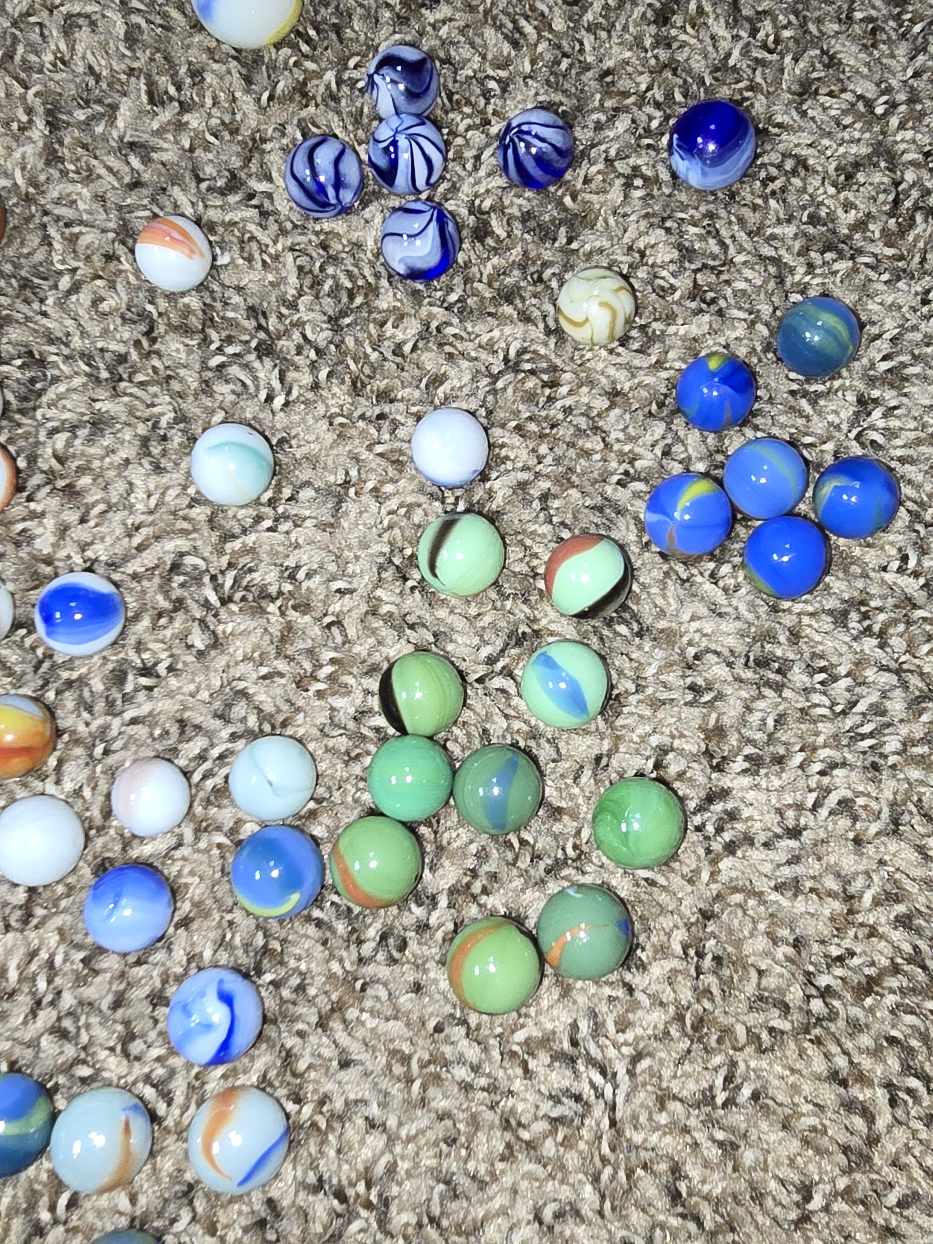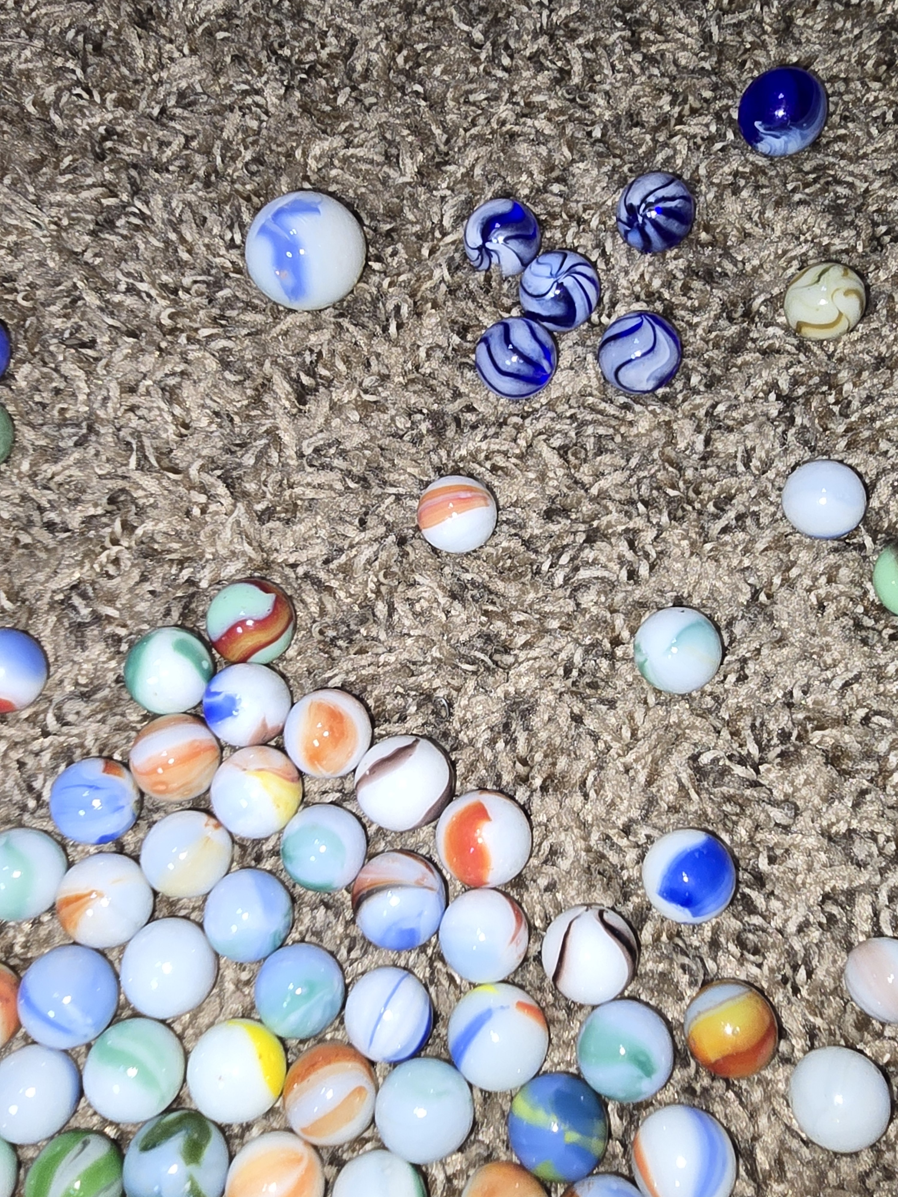 Some of these marbles I've had since I was a kid (70s) a few or my daughters when she was a kid ( tried to leave them out of the pictures) and then about 50% of them came from an elderly woman who had no children at all . She said they were hers when she was a child. Never asked her age but I think she was at least in her 70s.. Anyway I have no idea if any of these are collectible or worth anything or if I just donate them to thrift store. Found this group and thought I might ask her and see if anyone could be able to help me. I don't know of anybody local boise idaho that could help me look at them either.
