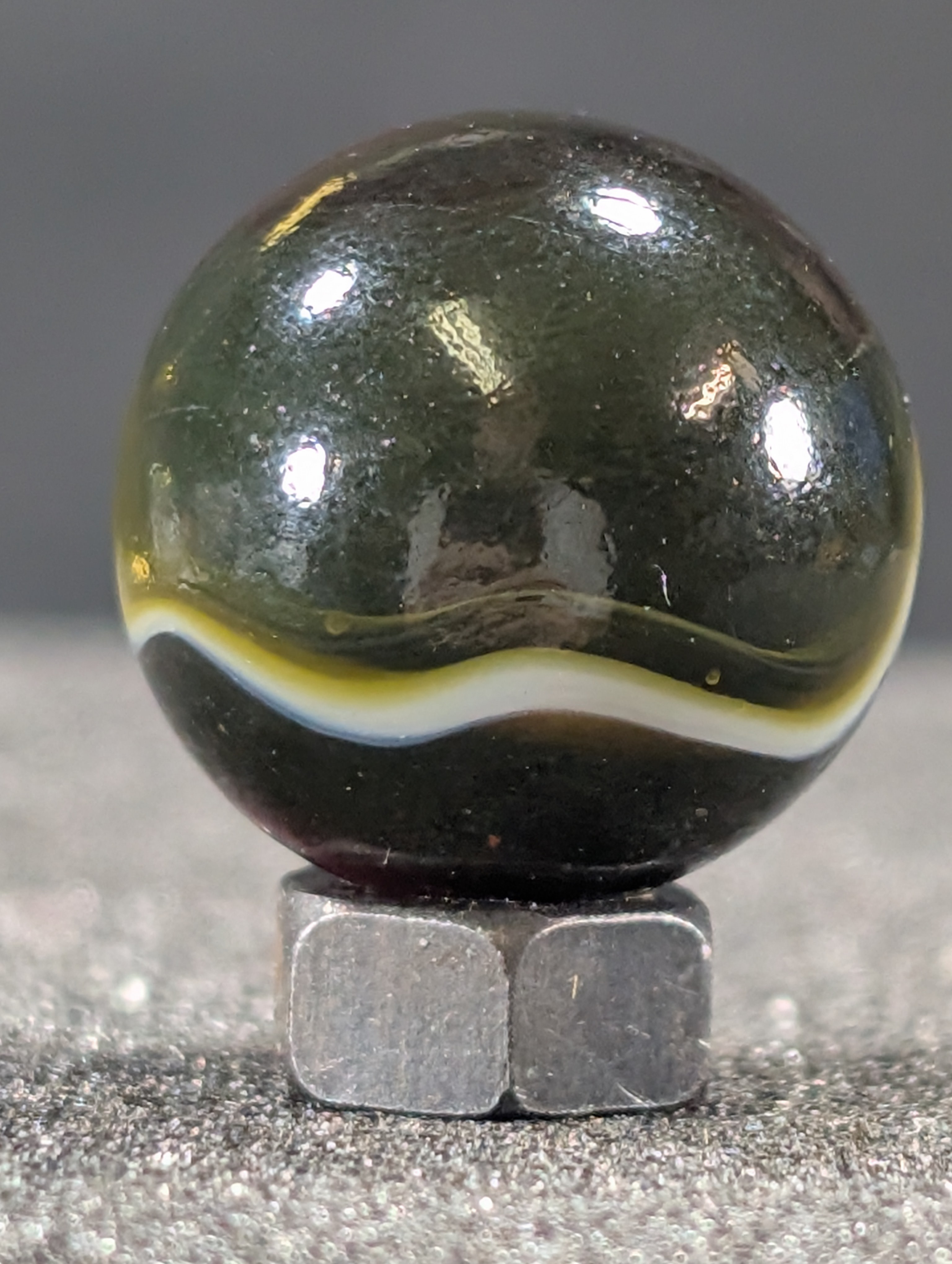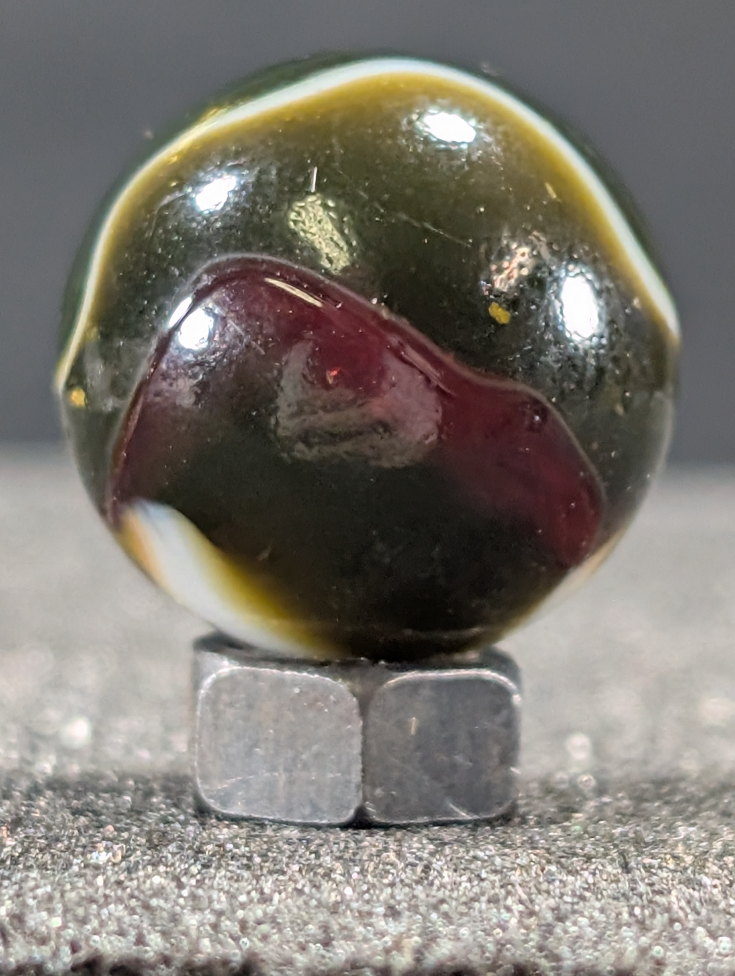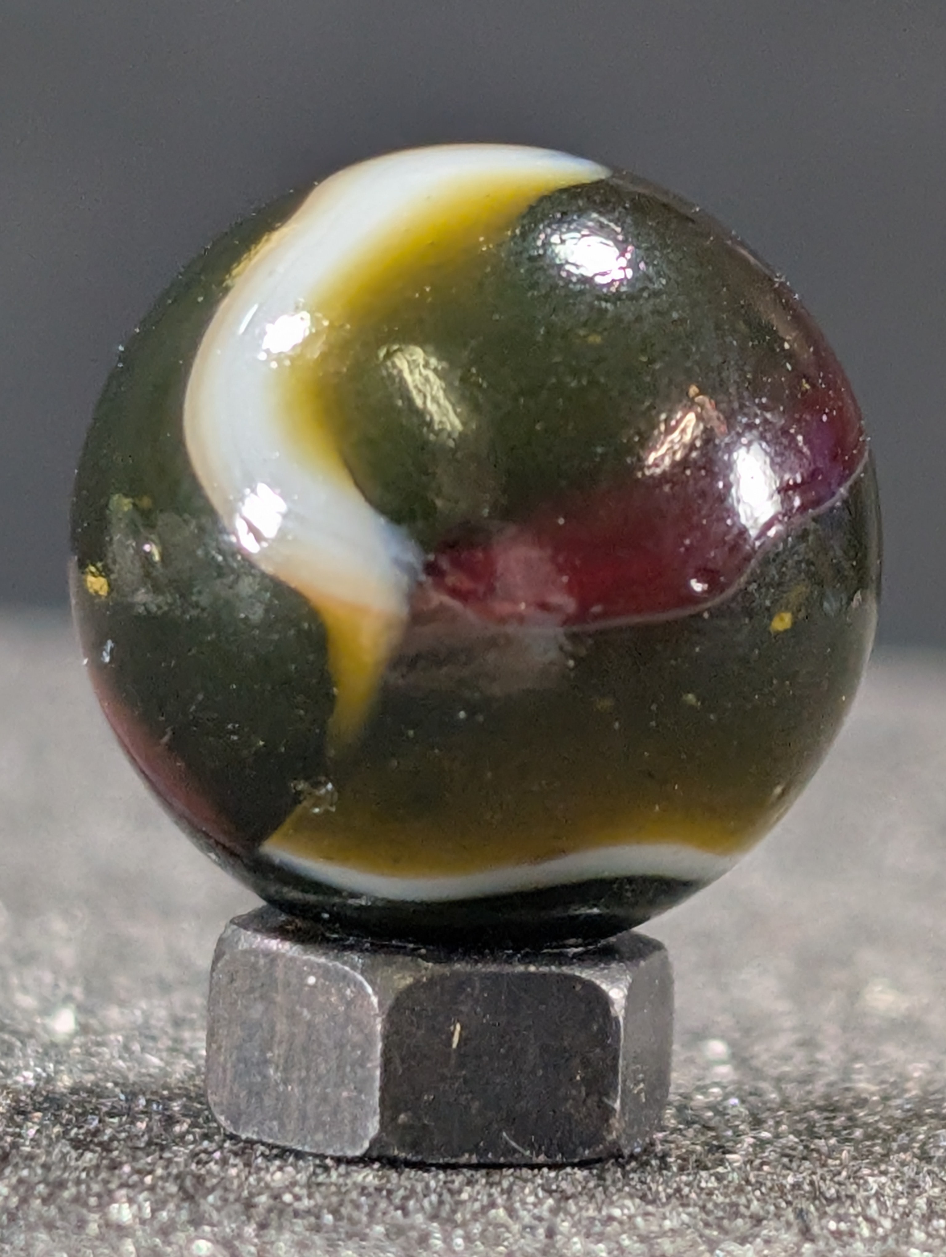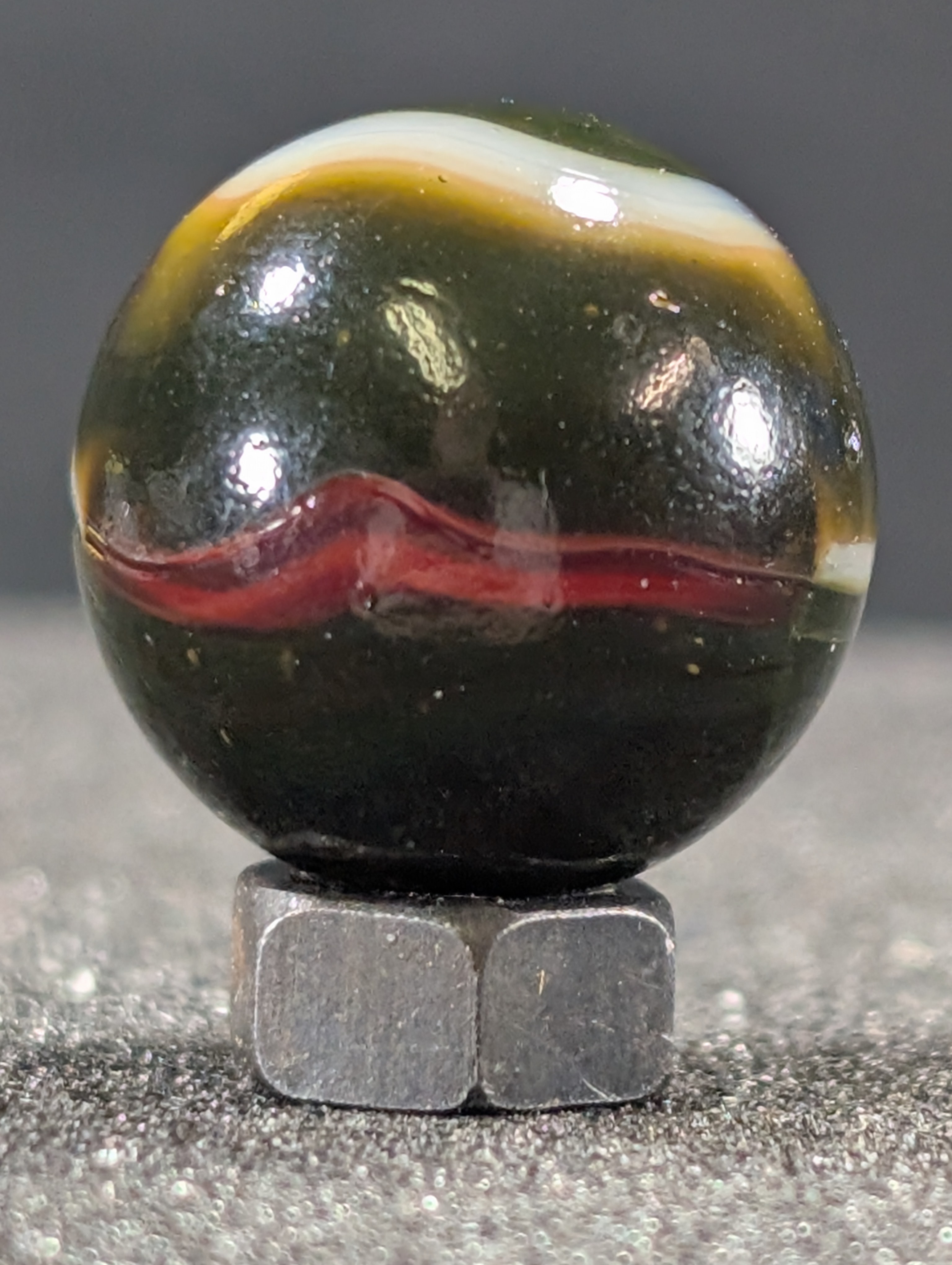 Parmcat Posted 18 hours ago Author Report Share Posted 18 hours ago 16 minutes ago, marboman said: This could be more than a common Rainbo. Try backlighting it, if it's opaque it may be a Pea Soup. Nice marble☺️ Here is the best I can do. 2 Link to comment Share on other sites More sharing options...