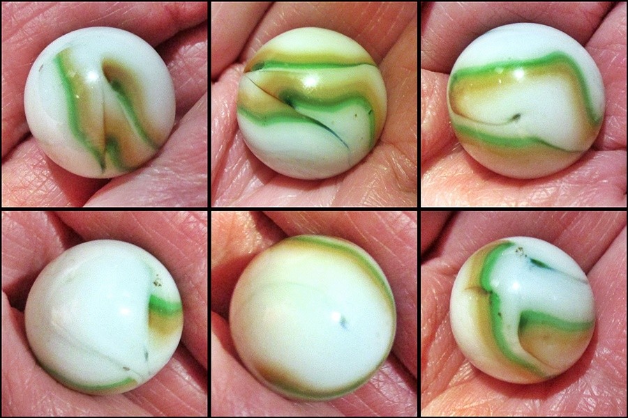 The Nickel Guy Posted 3 hours ago Report Share Posted 3 hours ago The spots have cleaned off since i took these pictures after I gave it a little cleaning. I like the green on this. This is one of those marbles that seems to be looking at me as much as I look at it. It jumps out at me in the crowd. Anyone see one like it before? Link to comment Share on other sites More sharing options...