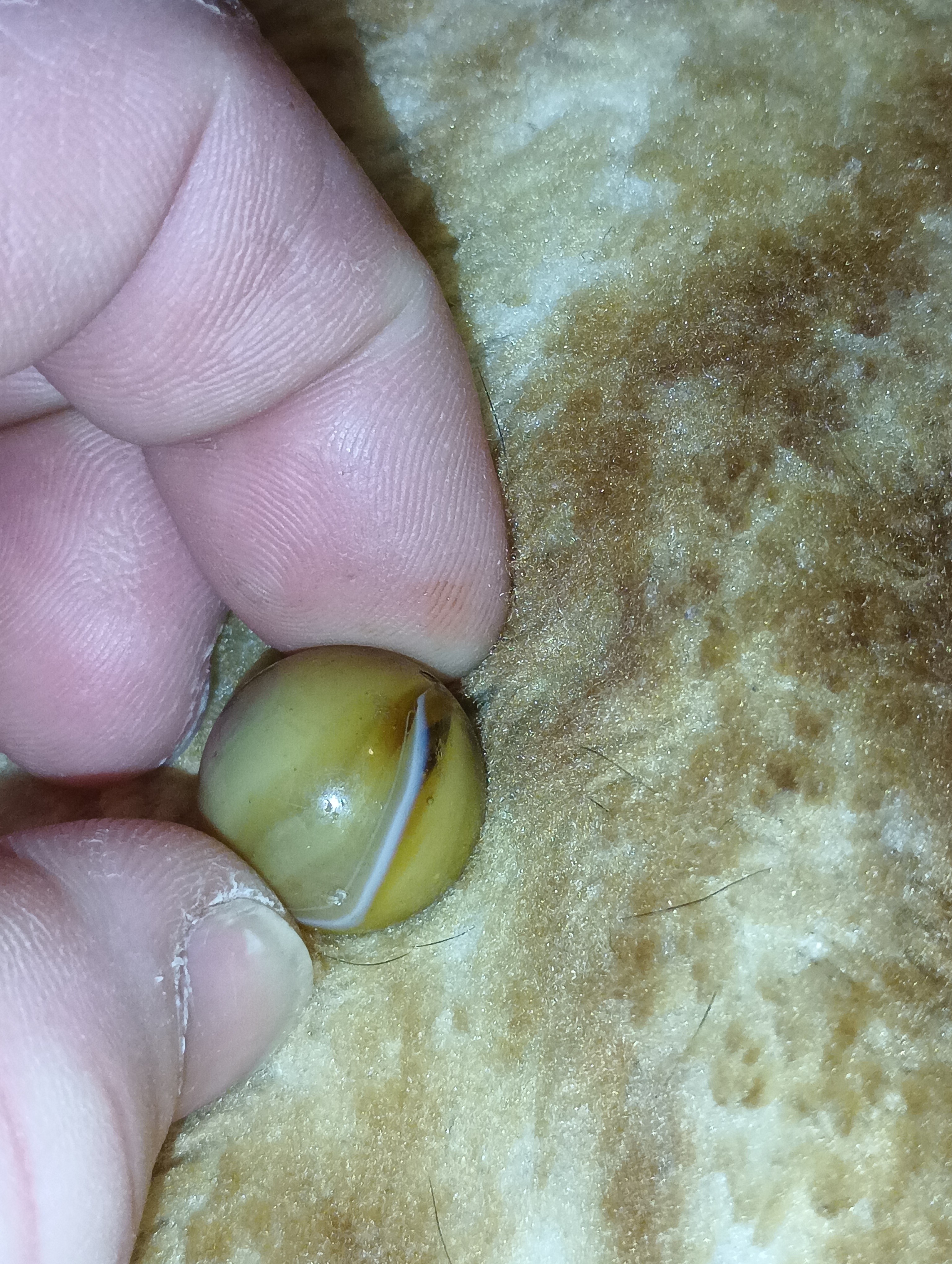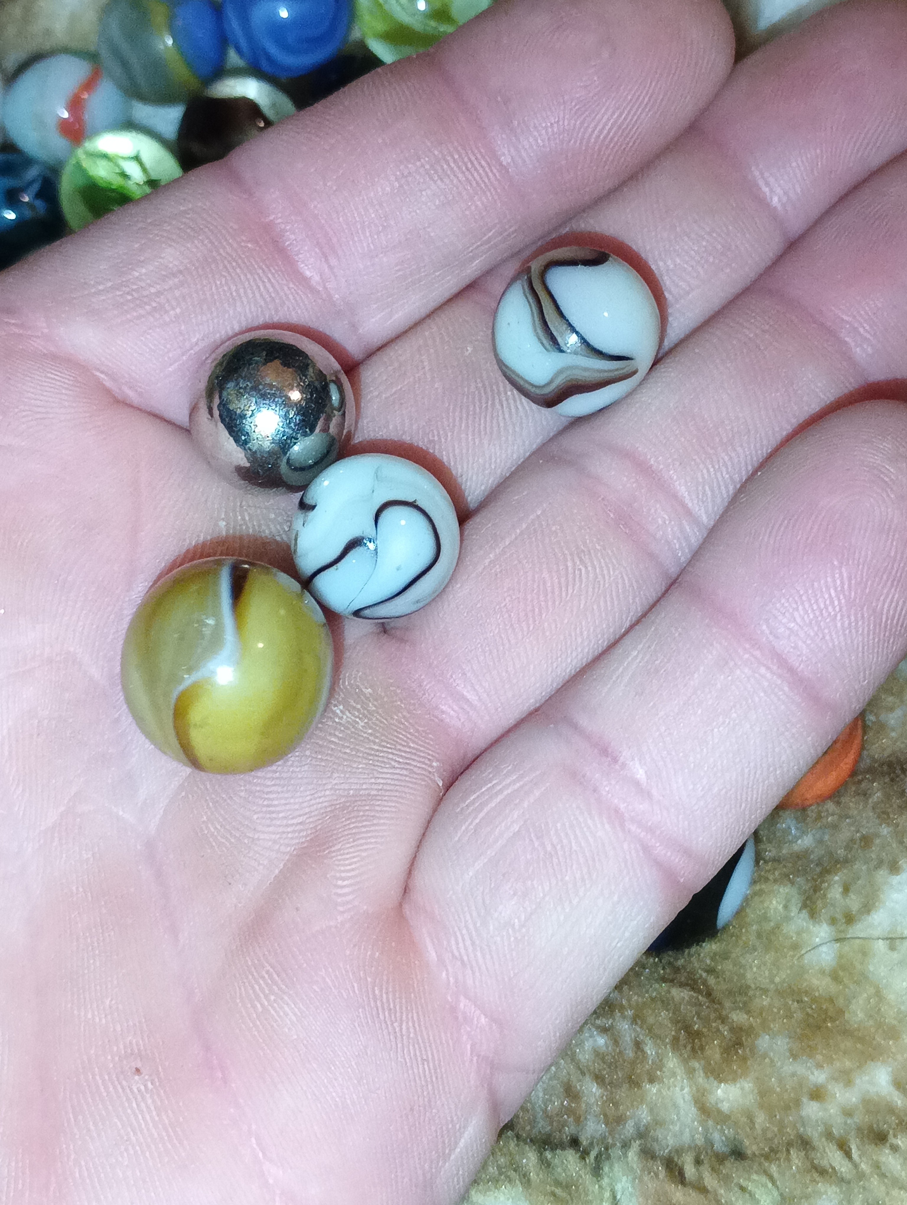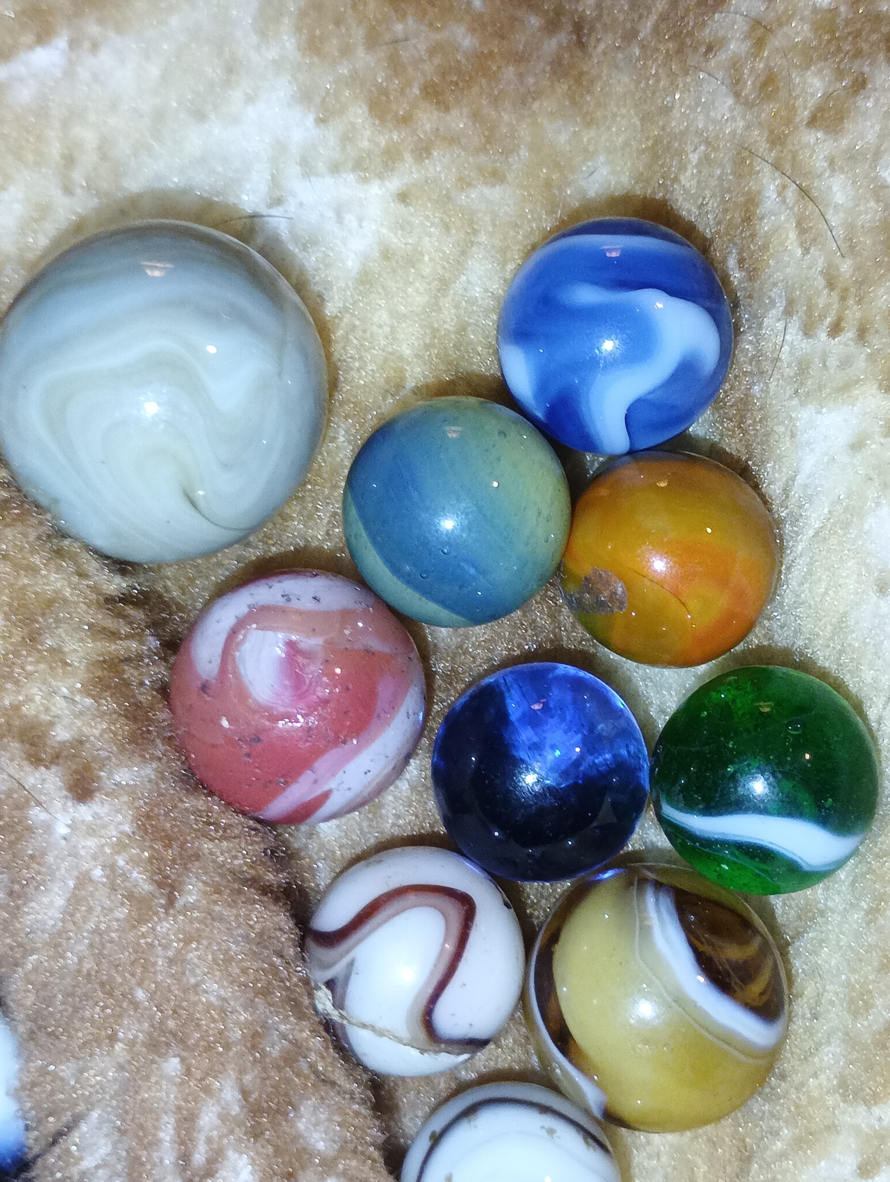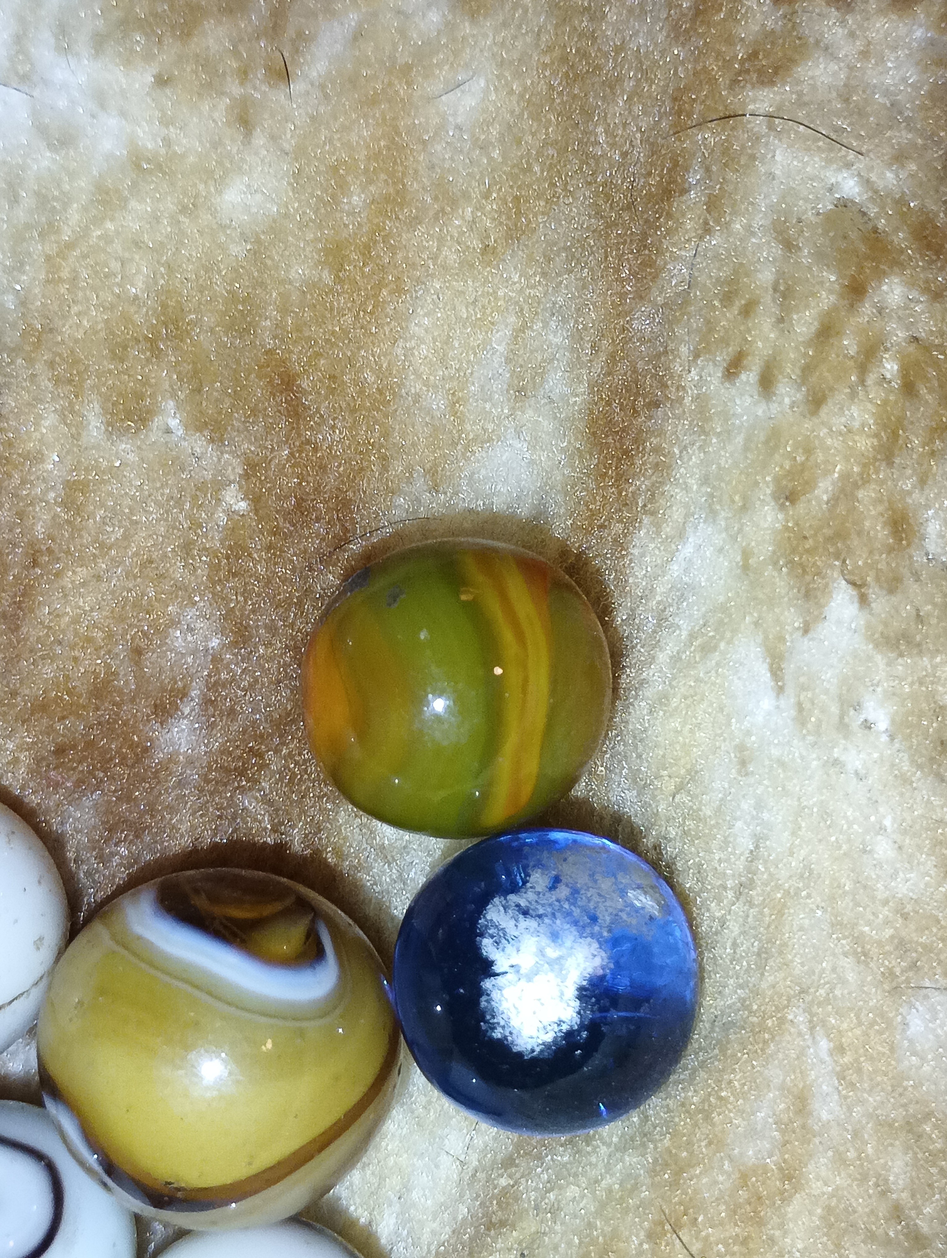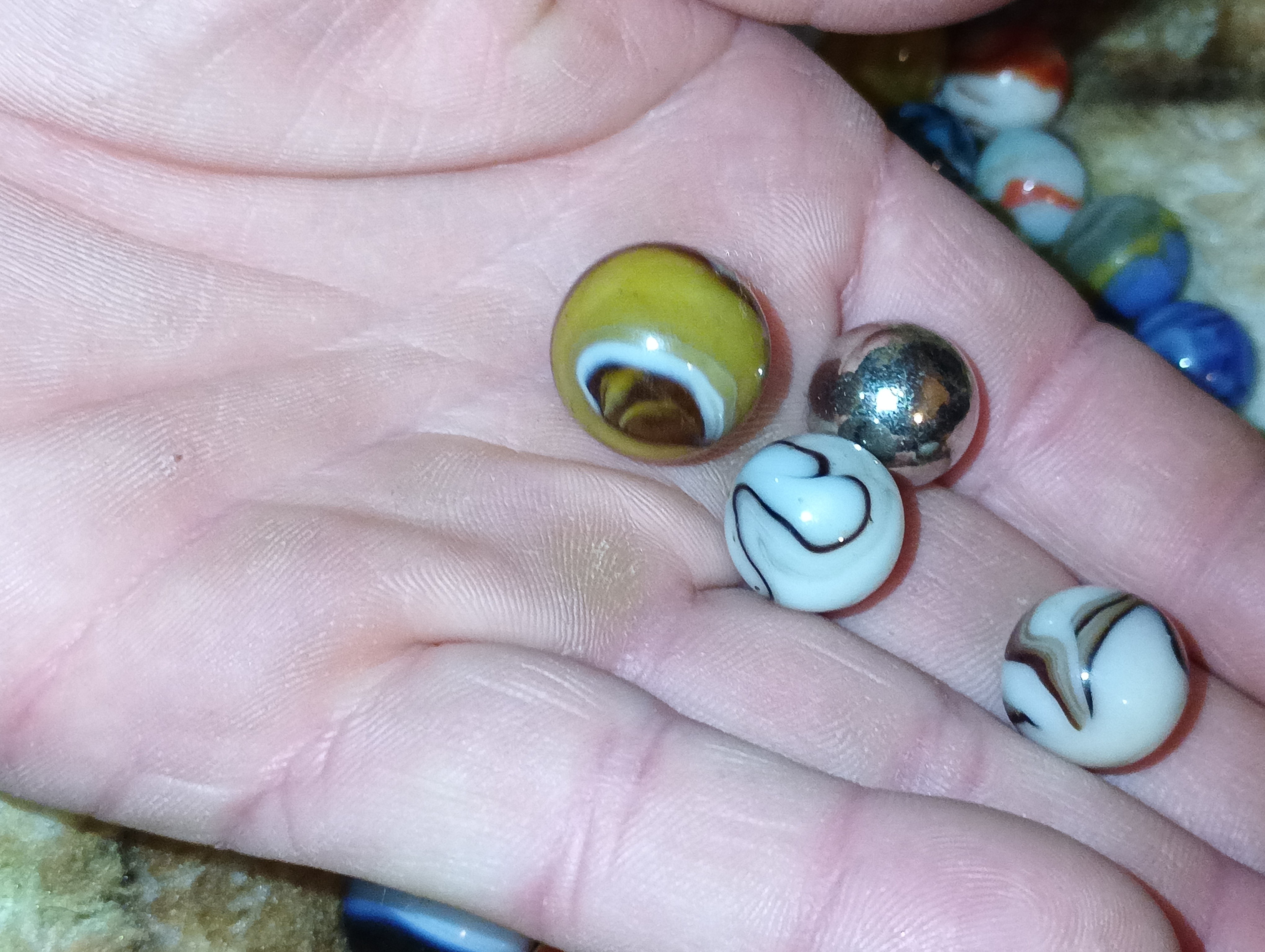 Chad G. Posted 13 hours ago Report Share Posted 13 hours ago Please remove the ball bearing, every time the steel touches the glass marble it causes damage, just put it in another jar if ya want to keep it,. value is next to zero if anything at all. Yes they were packaged and sold as marbles years ago but they are ball bearings. Link to comment Share on other sites More sharing options...