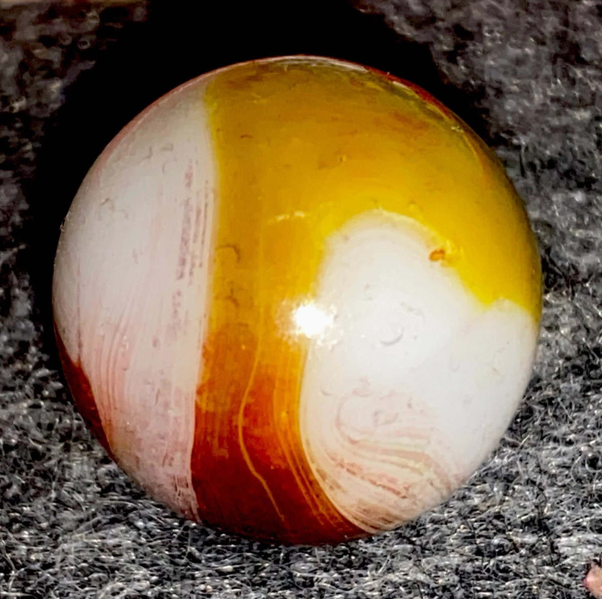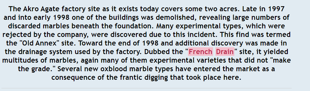 Chad G. Posted 5 hours ago Report Share Posted 5 hours ago crud in the tank, looks like the marble came out this way, notice how the crud follows the glassflow, a cull. i have loads of dug marbles that look just like it, not metal, a chemical reaction. experimental were 99% dug. i have one from the Akro French drain dig that is absolutely wet mint yet it was discarded as a cull like so many were. I'll go ahead and post it and the article from the French drain. they get looking like yours after a long time in a fish tank too. Link to comment Share on other sites More sharing options...