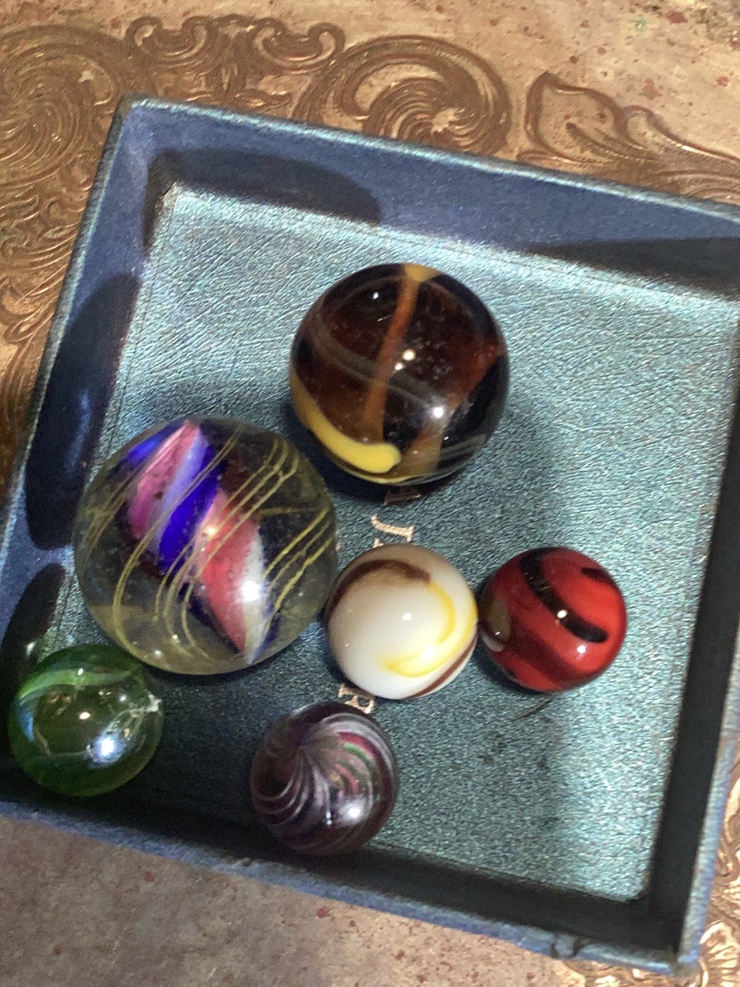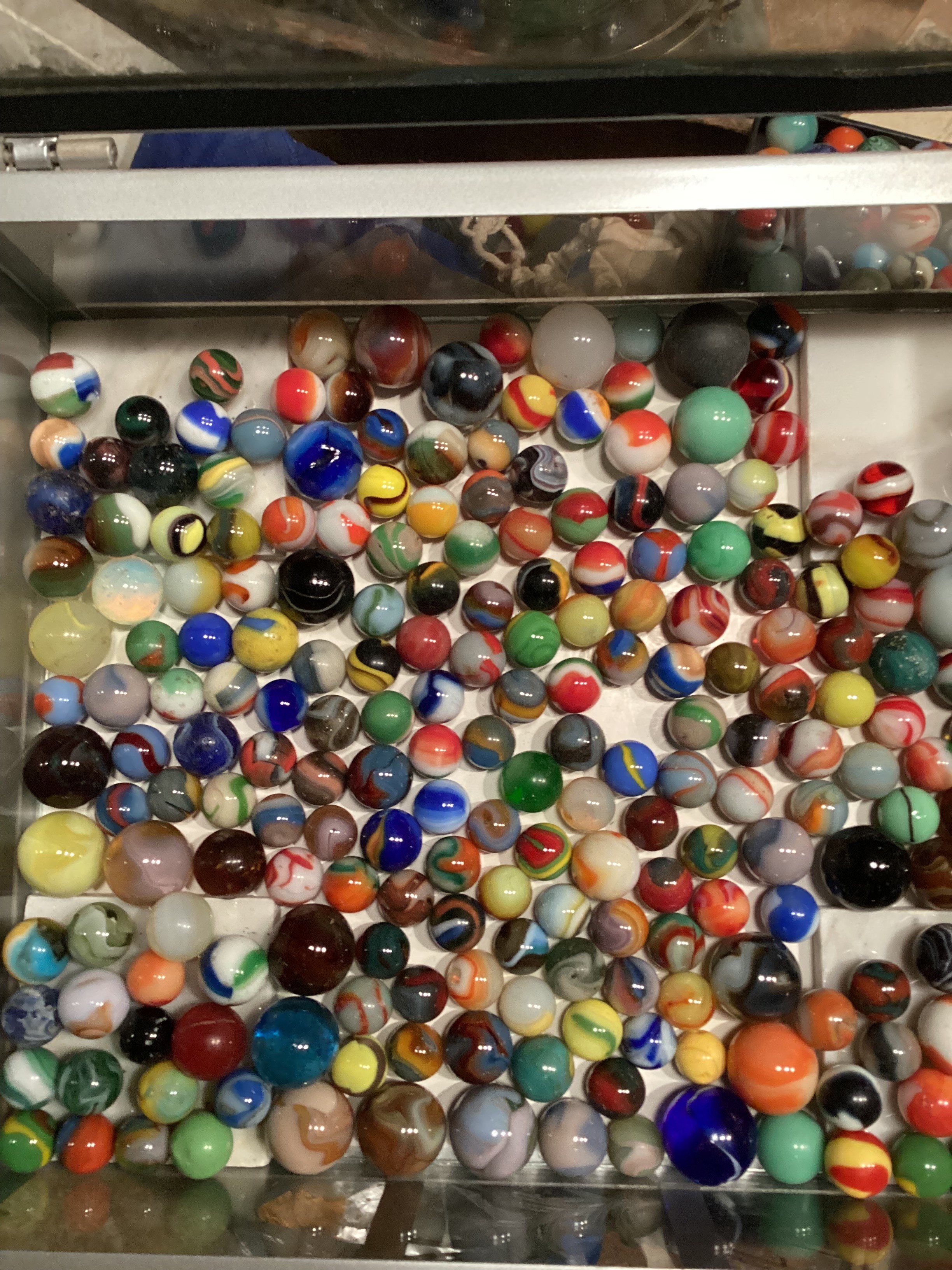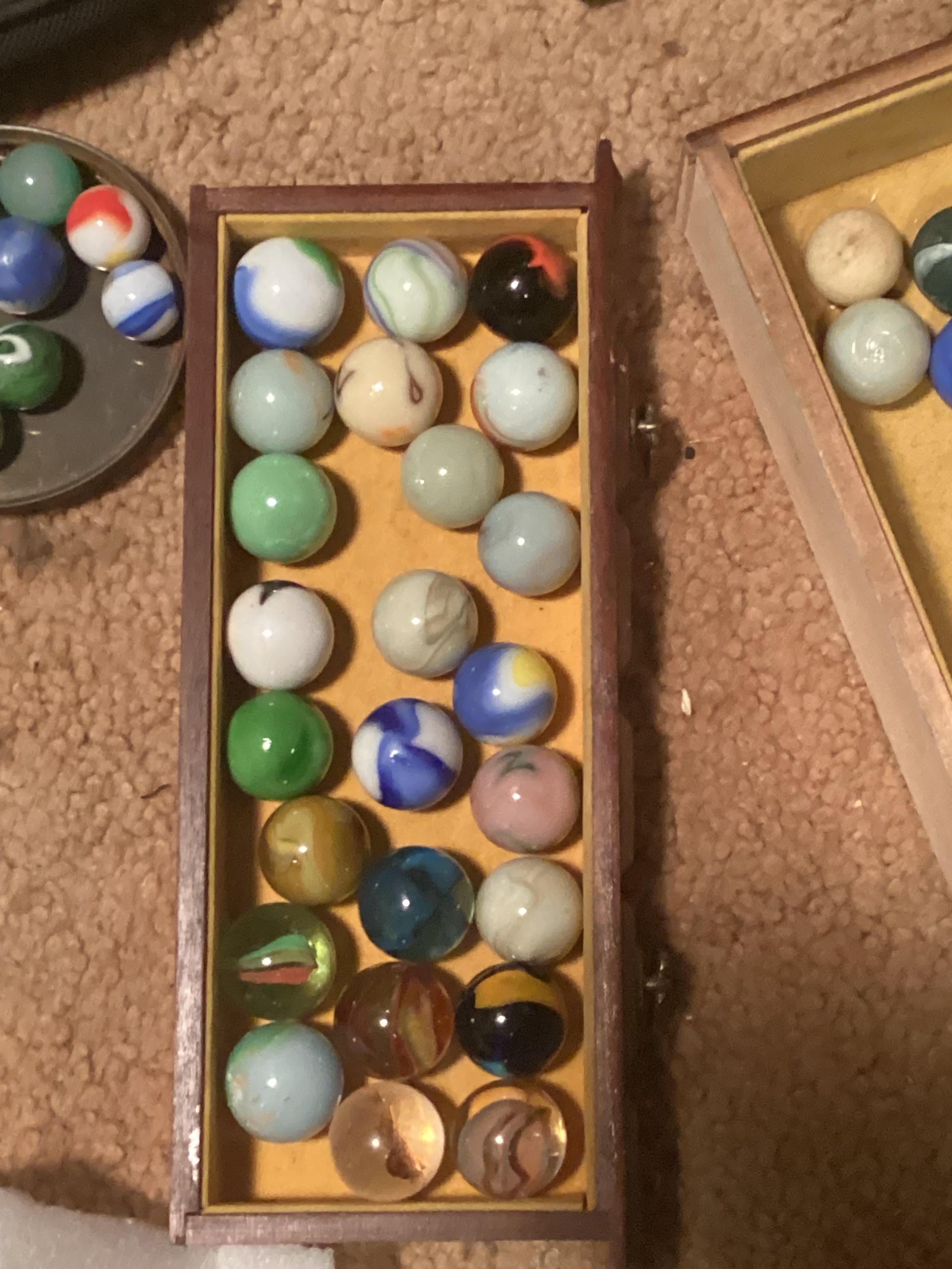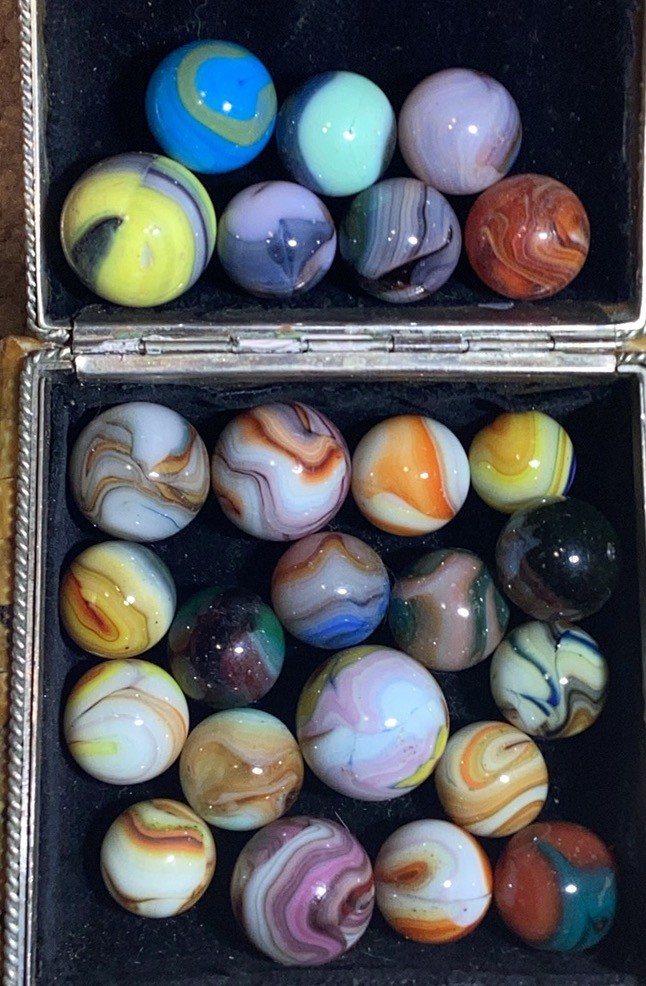 Wolf Posted 20 hours ago Report Share Posted 20 hours ago Hello, Miss Lola. That's a lot of marbles. I think the first two are superior German Handmade marbles. The 3rd one that's yellow/red/black is called an Indian Blanket. Depending on how big and minty it is, it could be worth a lot. Marbles are great. 😊 Link to comment Share on other sites More sharing options...