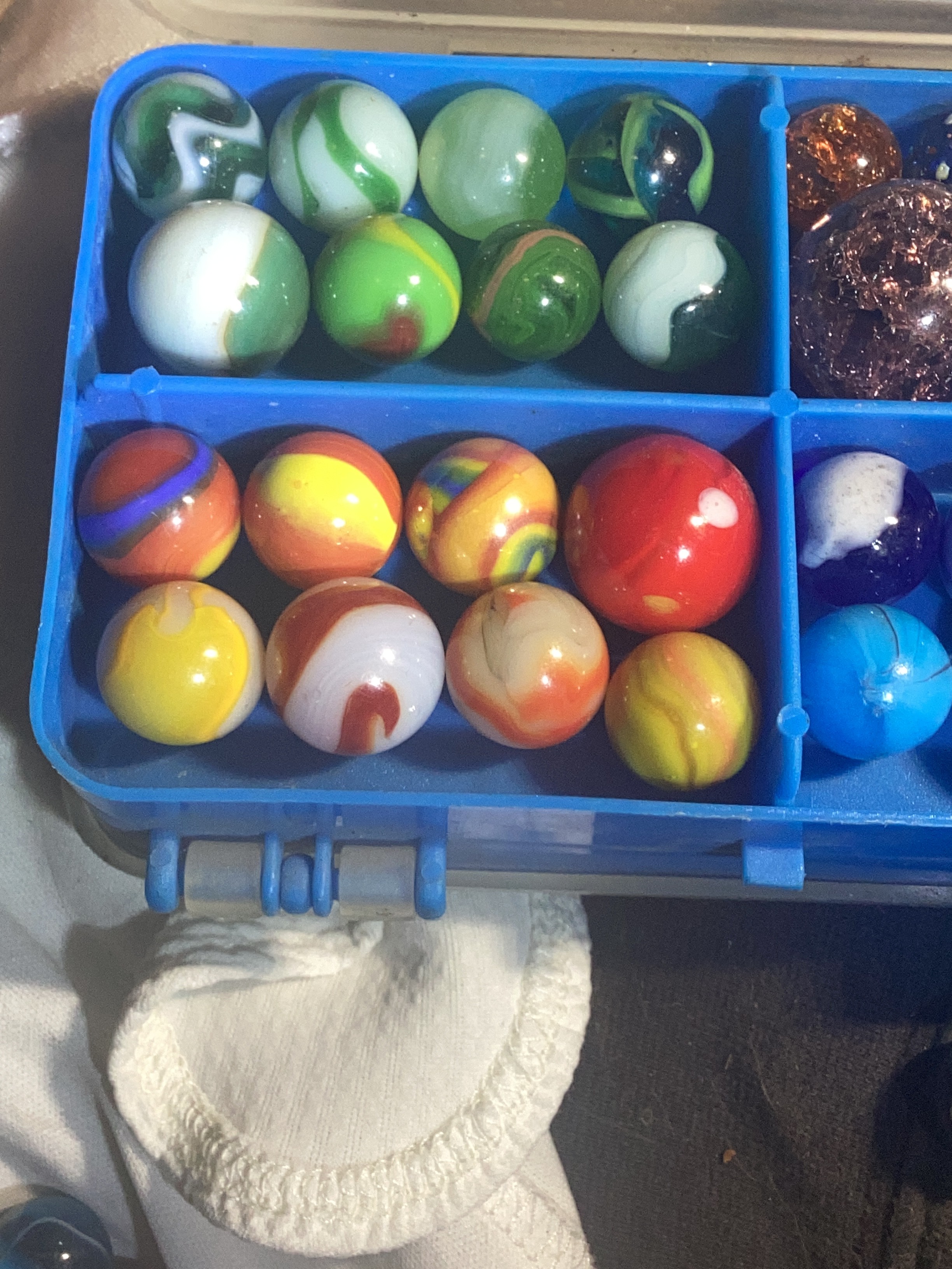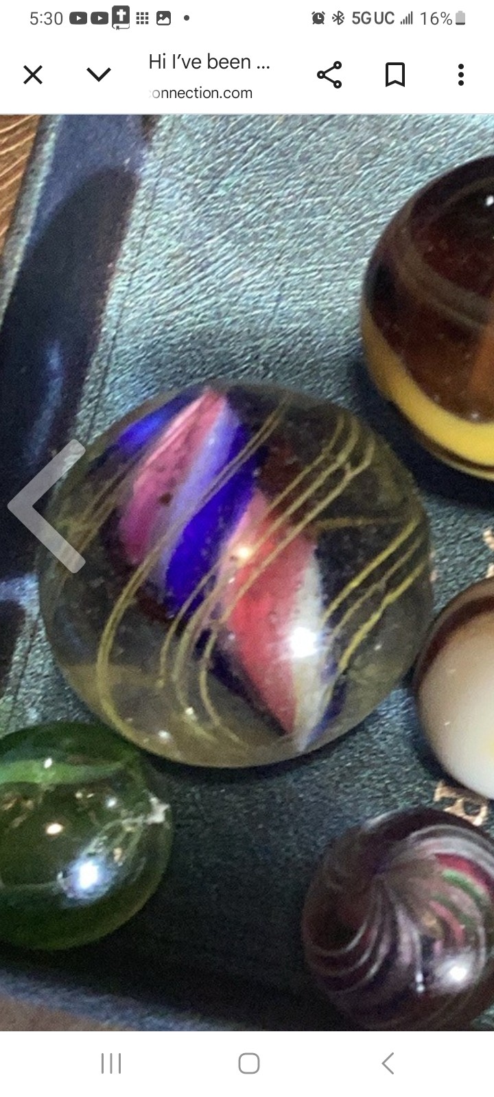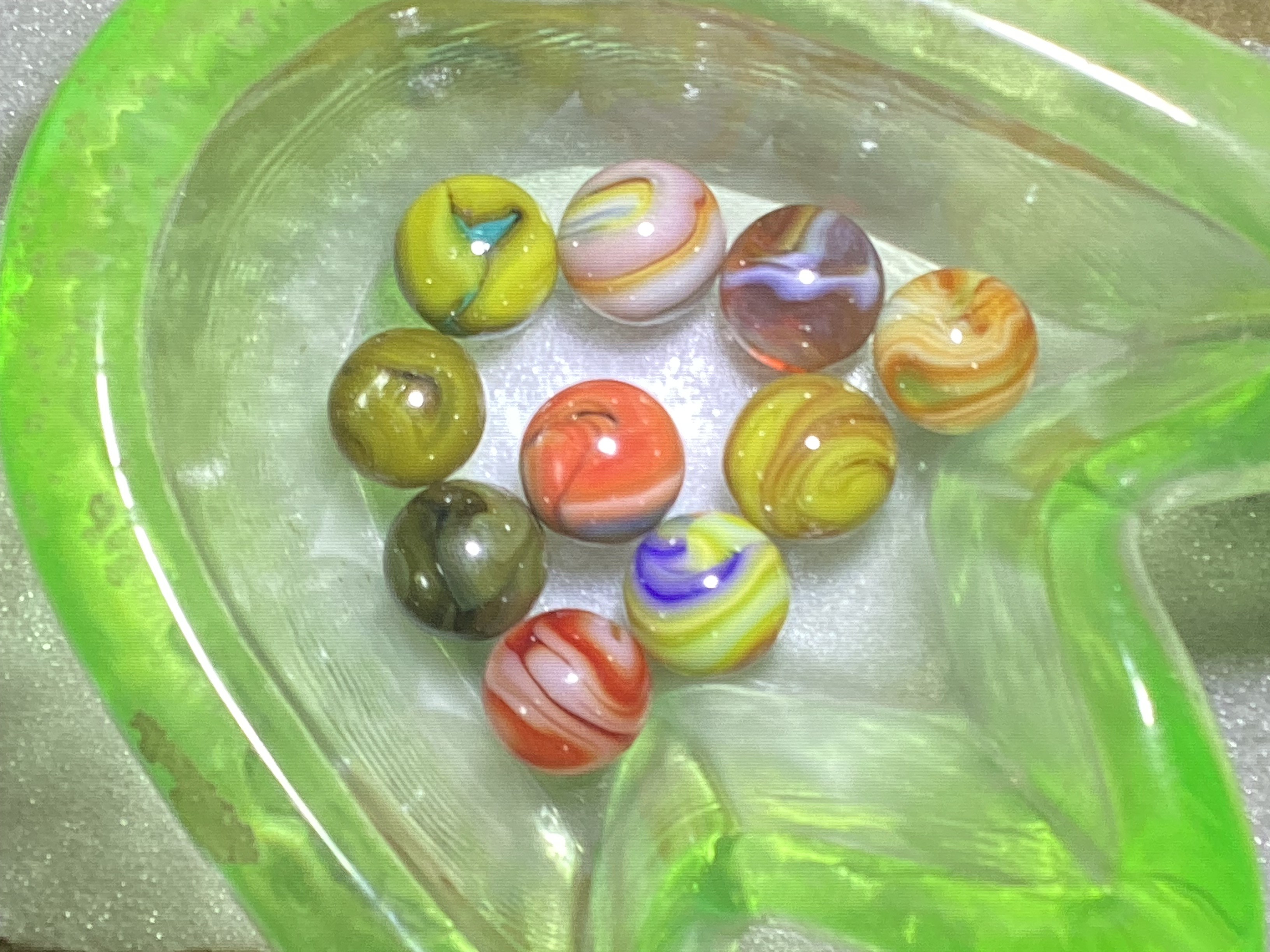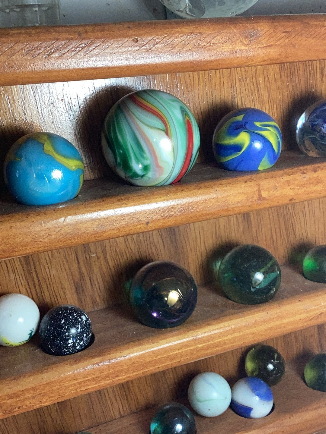Wolf Posted 20 hours ago Report Share Posted 20 hours ago Hello, Miss Lola. That's a lot of marbles. I think the first two are superior German Handmade marbles. The 3rd one that's yellow/red/black is called an Indian Blanket. Depending on how big and minty it is, it could be worth a lot. Marbles are great. 😊 Link to comment Share on other sites More sharing options...