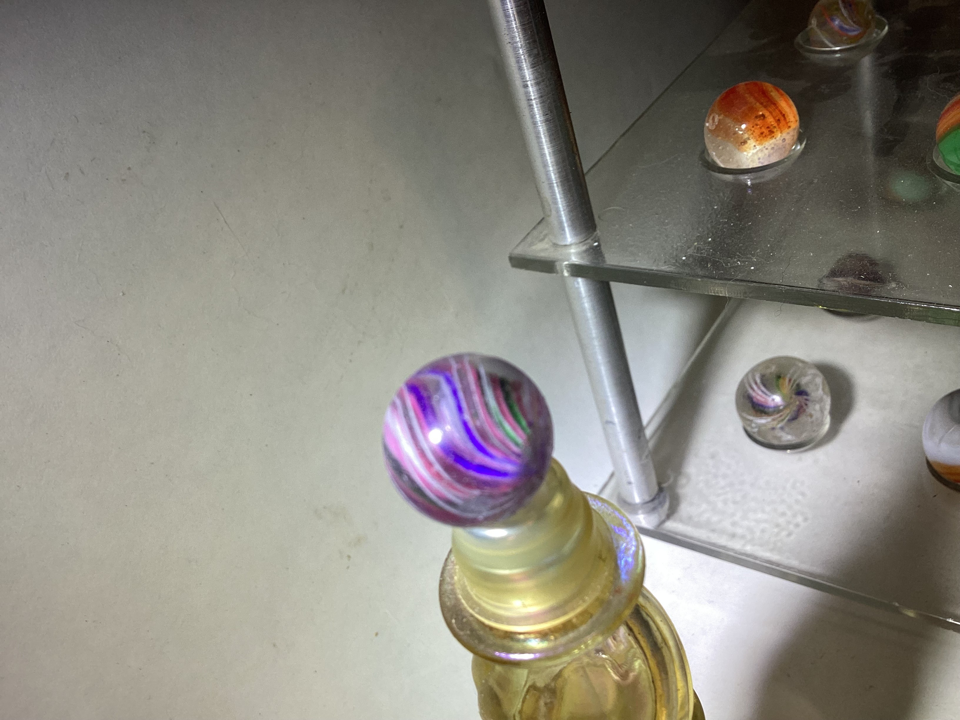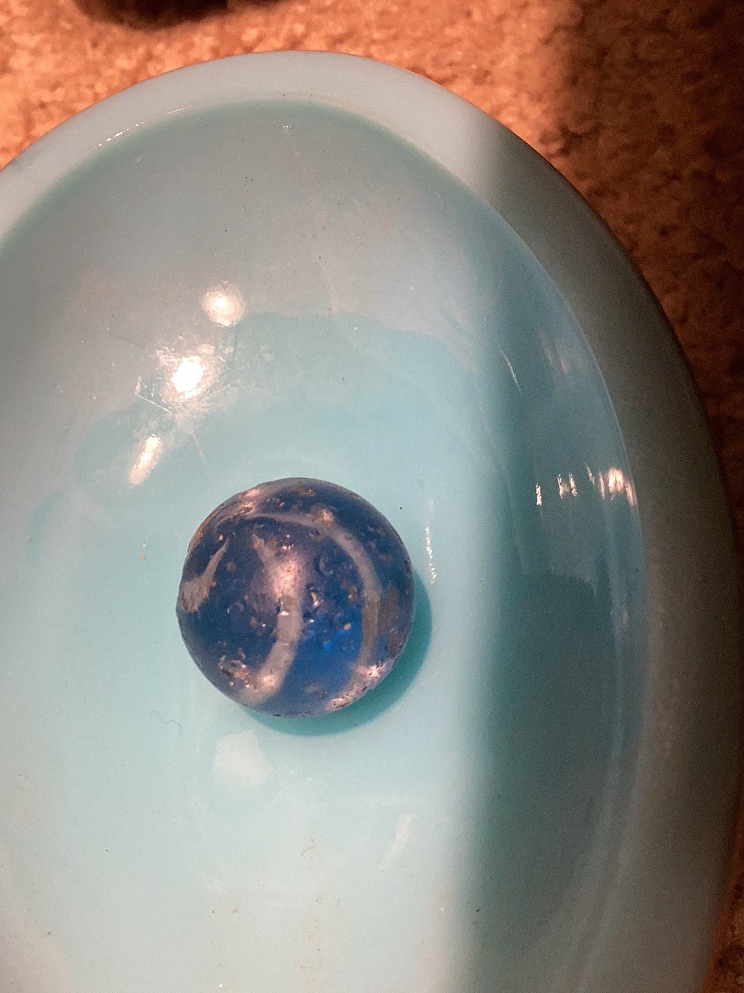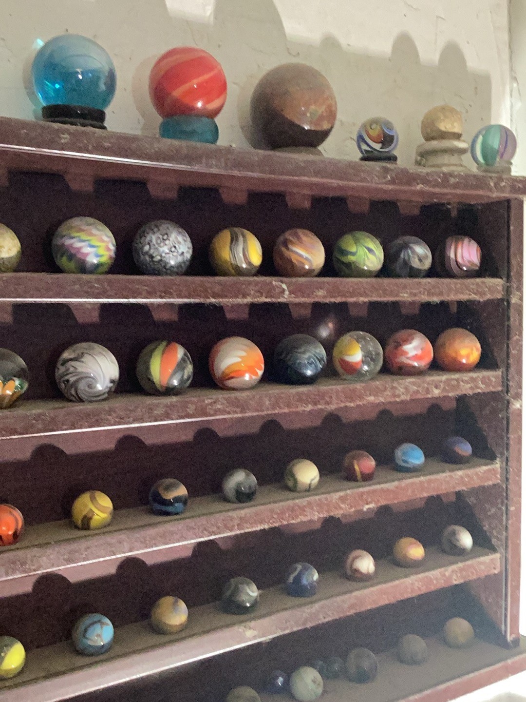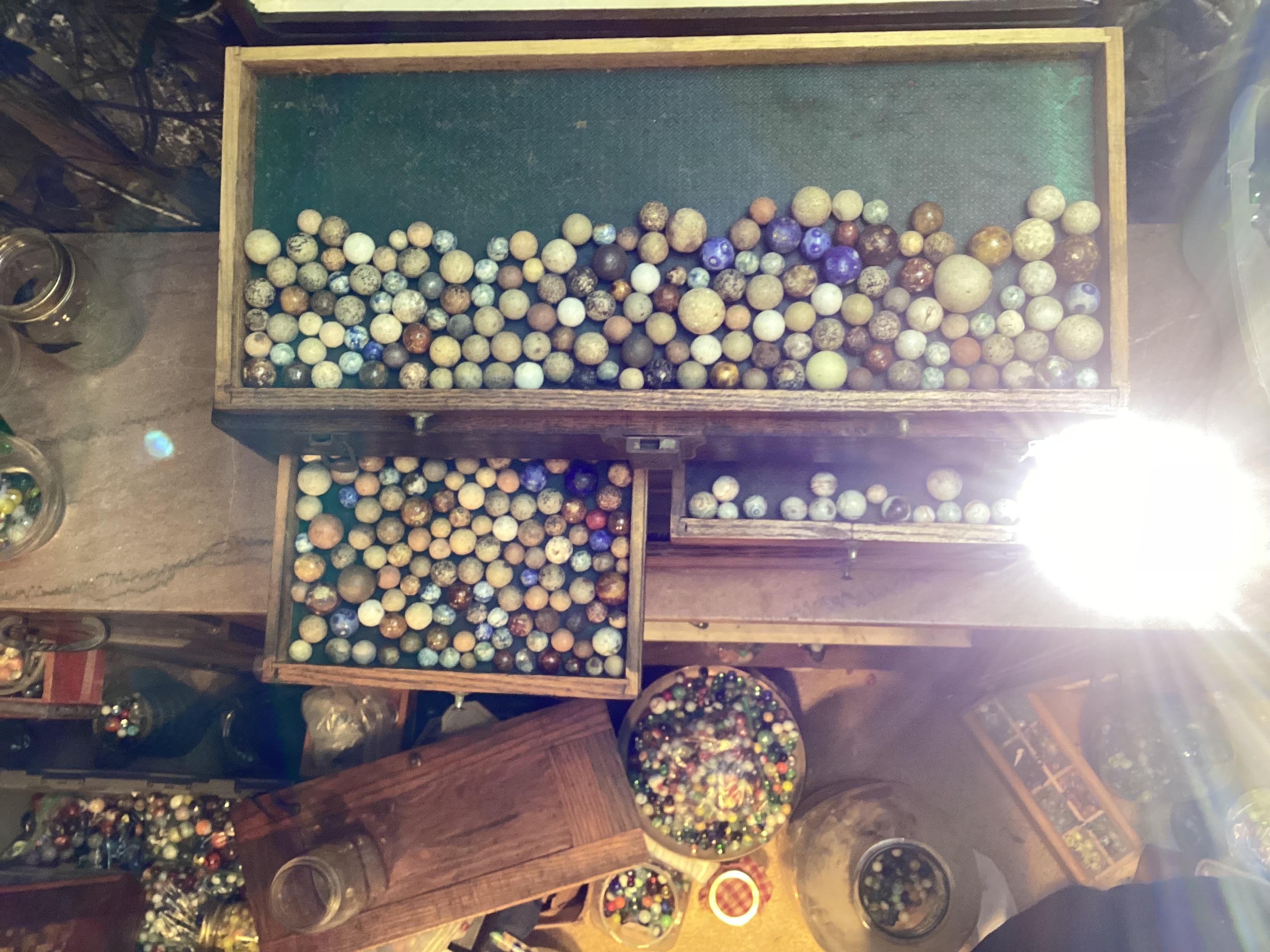 Wolf Posted 20 hours ago Report Share Posted 20 hours ago Hello, Miss Lola. That's a lot of marbles. I think the first two are superior German Handmade marbles. The 3rd one that's yellow/red/black is called an Indian Blanket. Depending on how big and minty it is, it could be worth a lot. Marbles are great. 😊 Link to comment Share on other sites More sharing options...