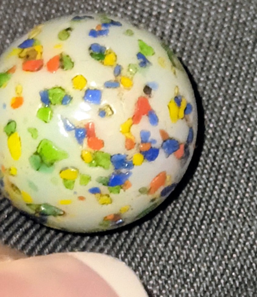 The DumpsteR BandiT Posted 11 hours ago Report Share Posted 11 hours ago Good afternoon! I live on an old greenery and find marbles a lot. I found this one in an old fire pit. This marble has some unique patterns but I am also one of those people who can see something in everything. It feels rough. I can feel each individual "speck" / "freckle" (I am not sure of the proper term.), but yet it is still smooth. A predicament wrapped in a conundrum... Just like me. Anyone familiar with this type? Thank you for your time and help! I'm very grateful! VID_20260112_115557332.mp4 Link to comment Share on other sites More sharing options...