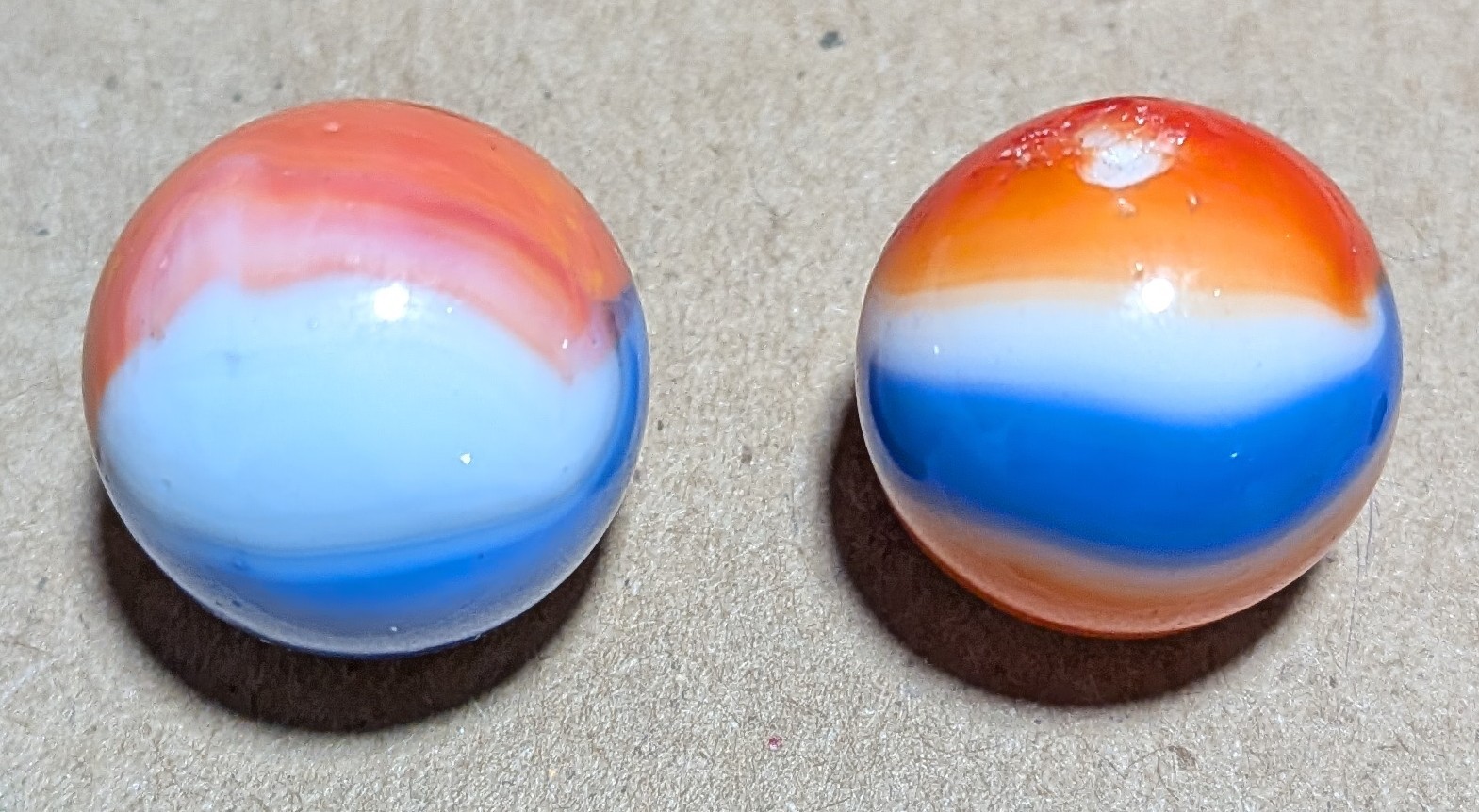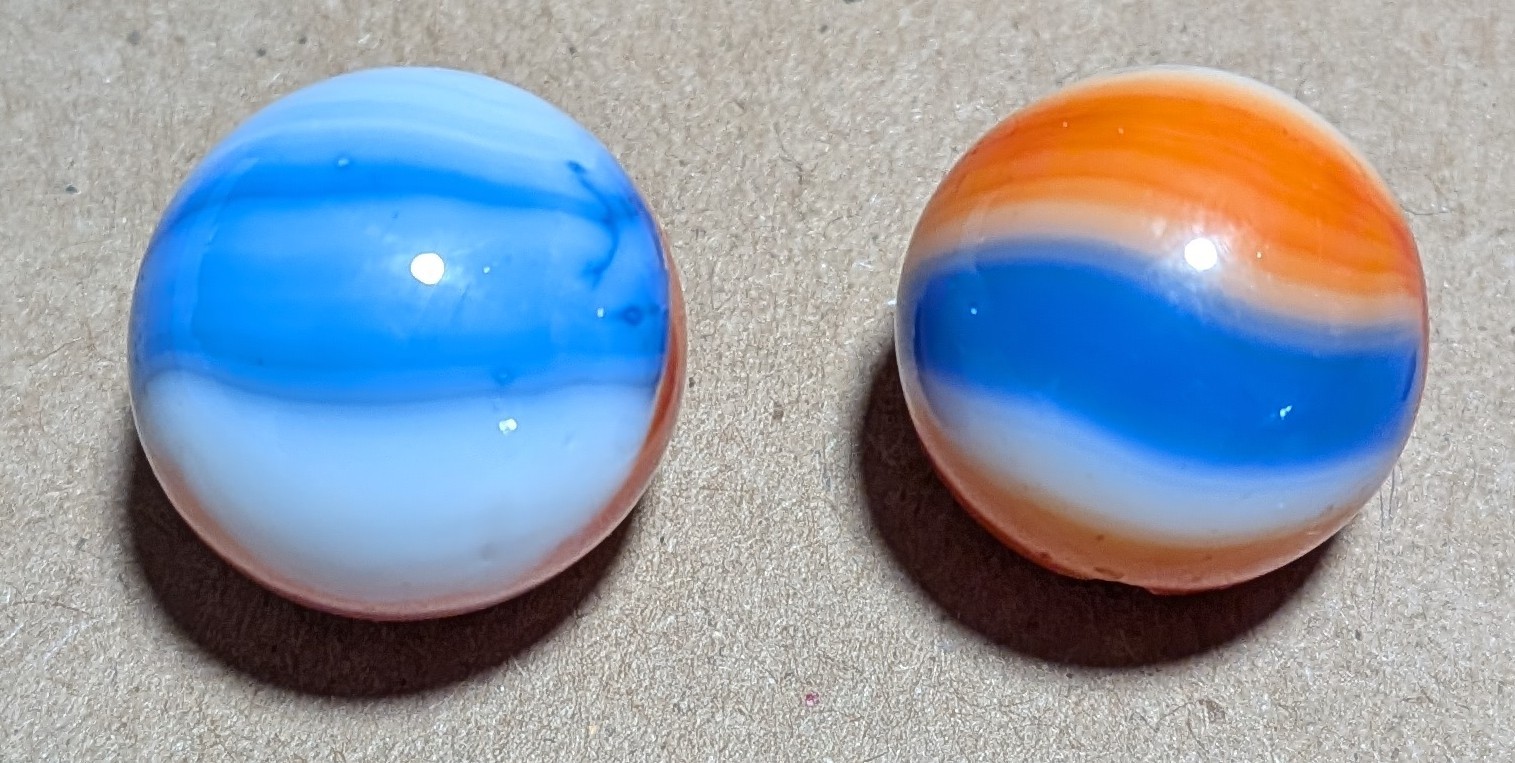 akroorka Posted 12 minutes ago Report Share Posted 12 minutes ago Ummm, These both look like Vitro--the left one is a Vitro imho and the right one shows a classic cutline of an Akro Patch type. Both are nice finds. Marble--On!! Link to comment Share on other sites More sharing options...