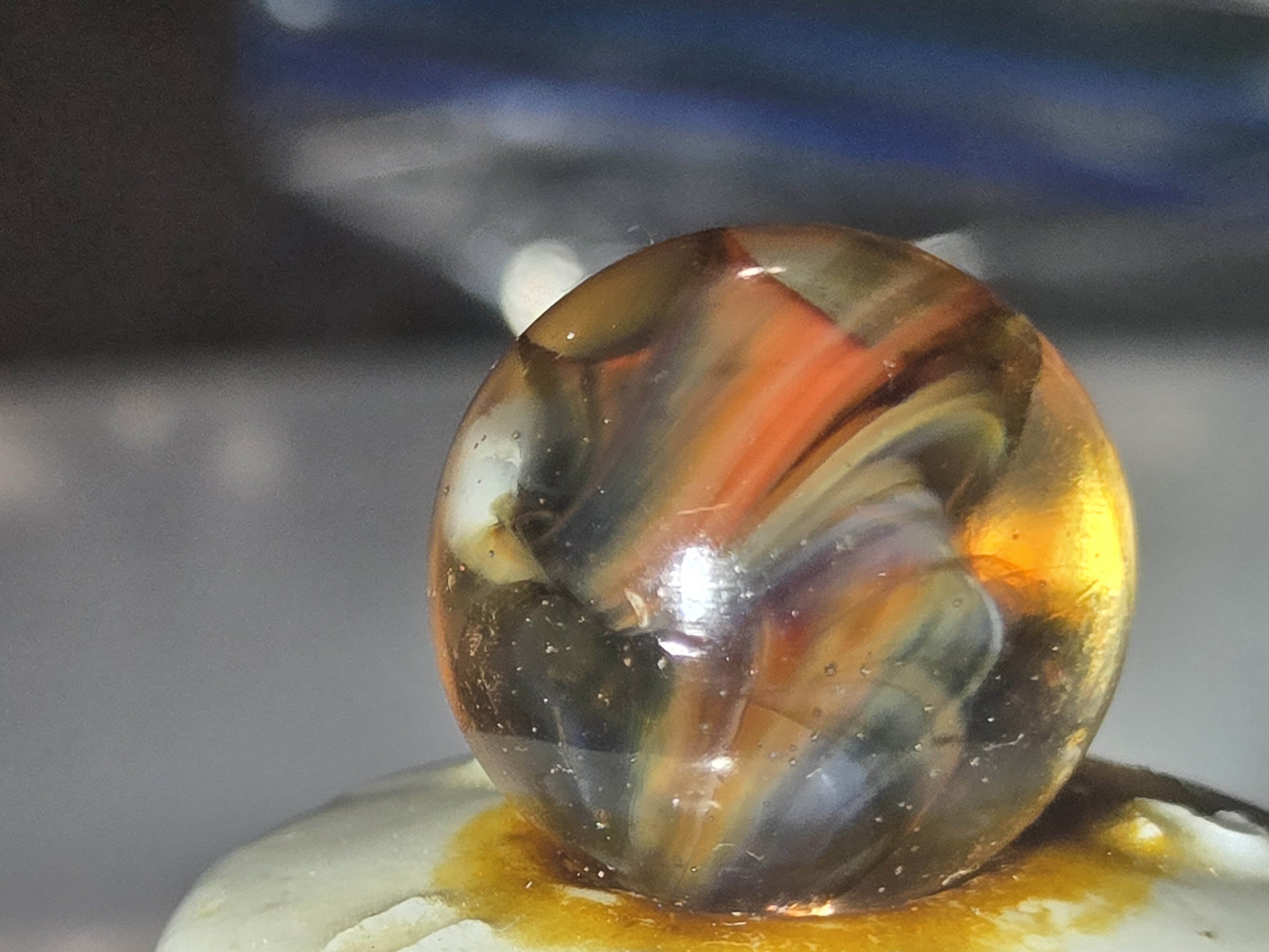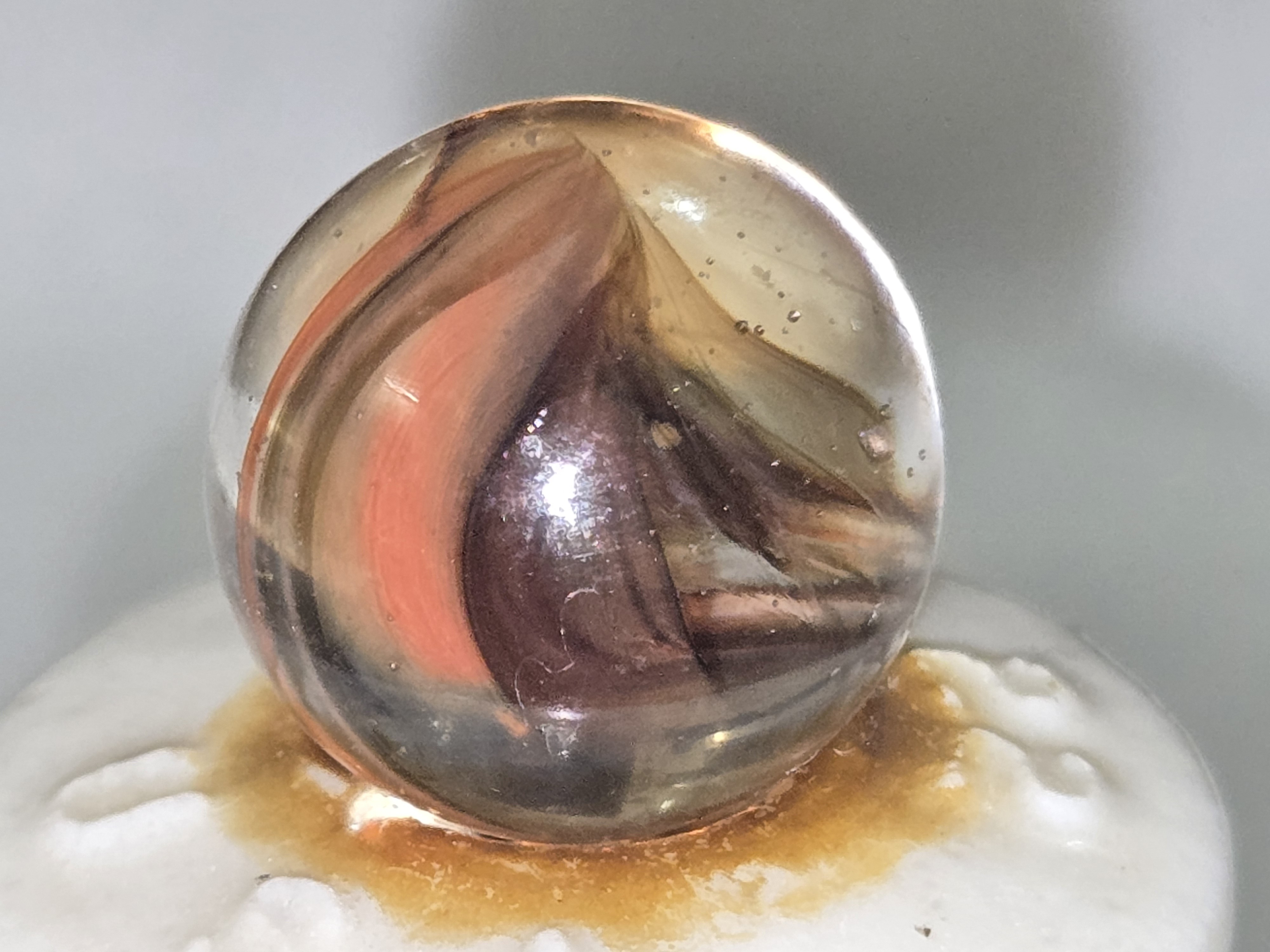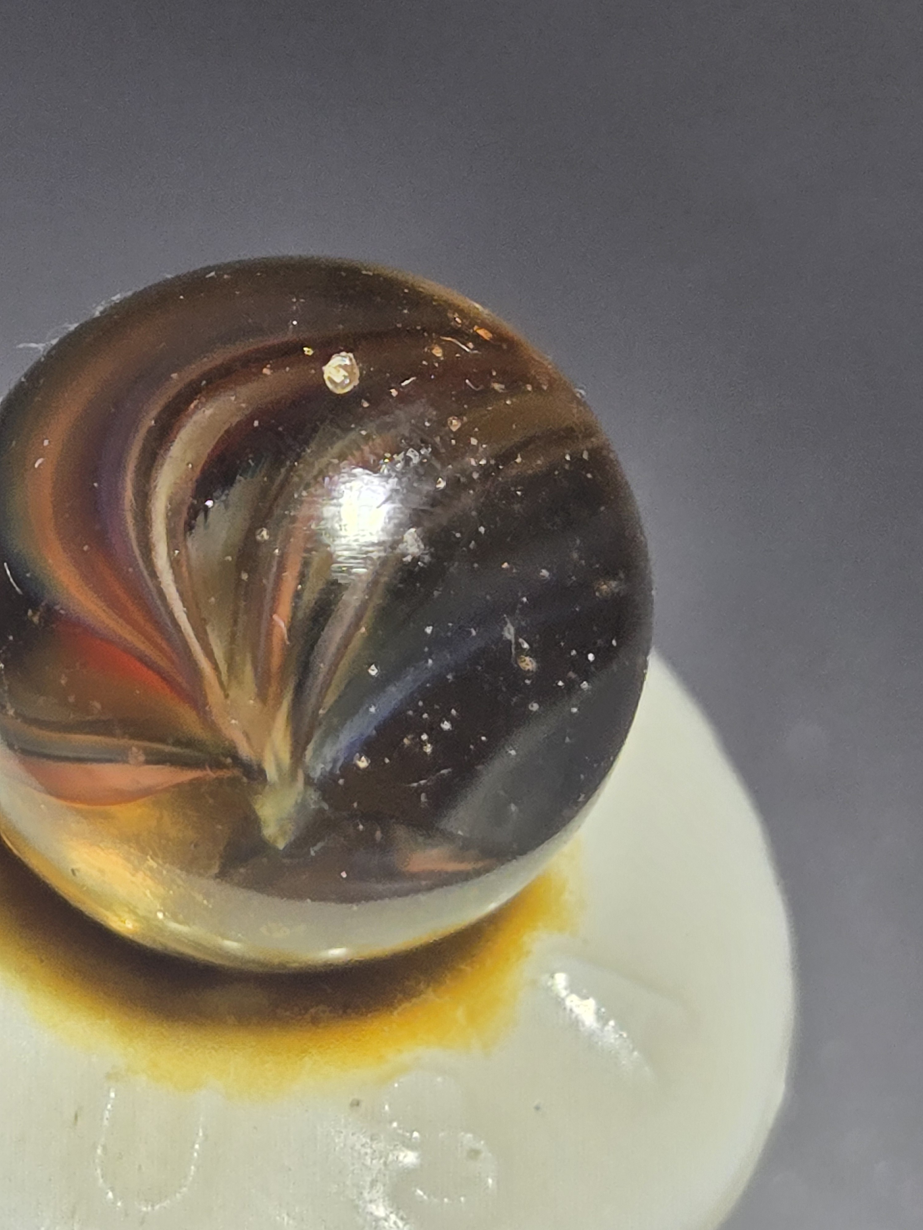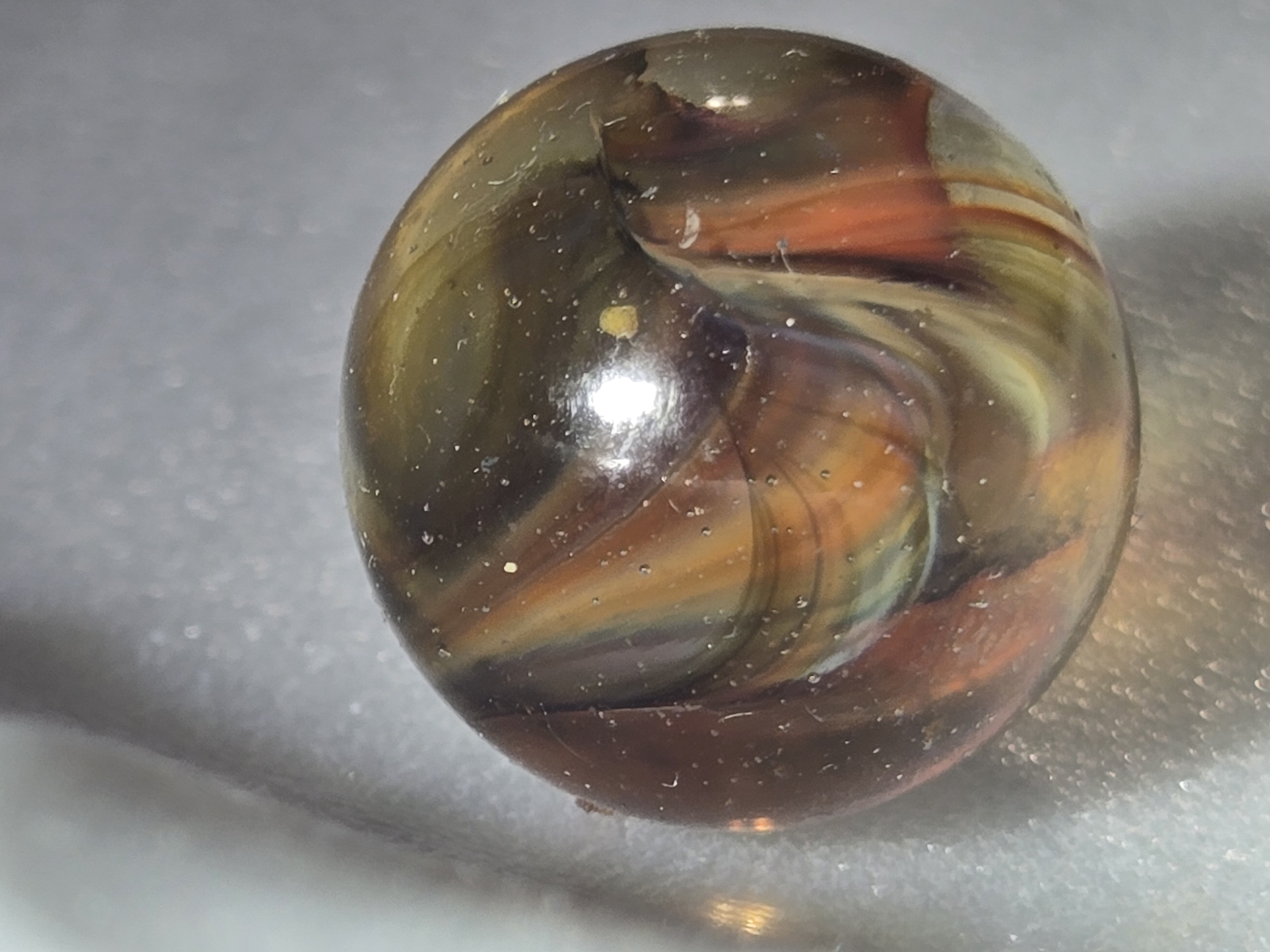 akroorka Posted 10 hours ago Report Share Posted 10 hours ago This is probably a Vitro. I have seen Vitro "Caged Cats" with these colors involved. You could call it a cat or a swirl but these bigger ones never acted the same (.90) right? I would not be surprised to find this one in a mix of similar Vitro Cats. Nice find--good ask, Nice images!!! All opinions are appreciated and welcomed. Marble--On! 1 Link to comment Share on other sites More sharing options...