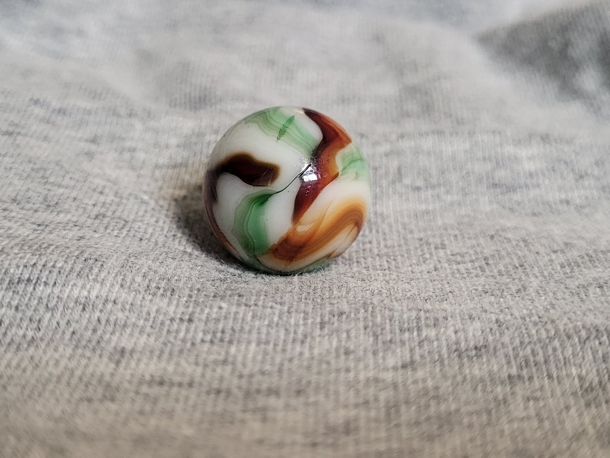 akroorka Posted 9 minutes ago Report Share Posted 9 minutes ago I can see where you are coming from--it is very similar to a “Pelt Burnt Christmas Tree”. It is not imho. I would probably sort it as an Alley Agate swirl. It could be one of those Jabo “Contracts” that screw us all up though. Nice marble, nice share. Marble—On!! Link to comment Share on other sites More sharing options...